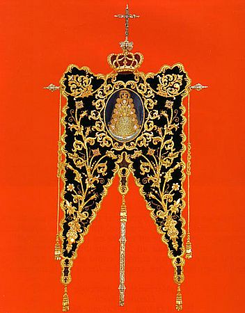 Fabricada en metal plateado, la imagen de la Virgen, en su caracterización de «Reina», está rodeada de hojas de acanto que rematan en la parte superior en una corona real. Bajo la figura de la Virgen se encuentran dos escudos representativos, uno, de la localidad, con un pino y el otro con el monograma mariano del Ave María. Entre los dos escudos encontramos un símbolo a modo de torre con un lucero de múltiples rayos, simbolizando a la Patrona de la localidad, la Virgen de La Estrella.