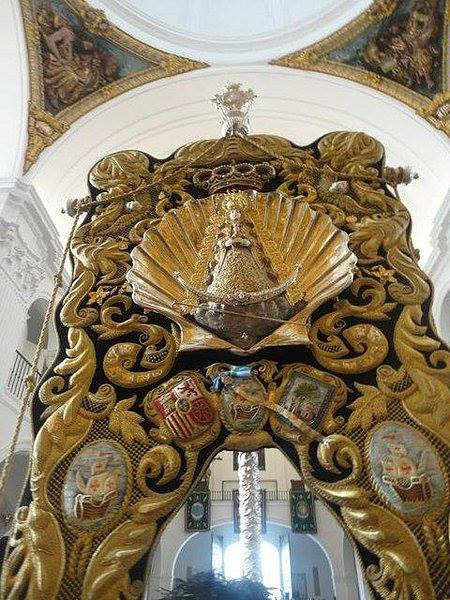 Estrenado en la Romería de 1991, posee bordados en oro sobre terciopelo verde realizados por las hermanas Oblatas de la Cinta. En su centro, una gran concha peregrina de plata da cobijo a la Virgen vestida de reina.