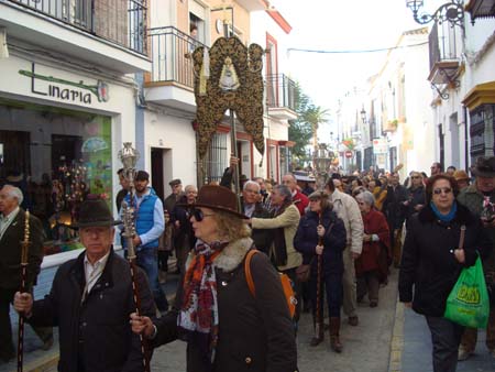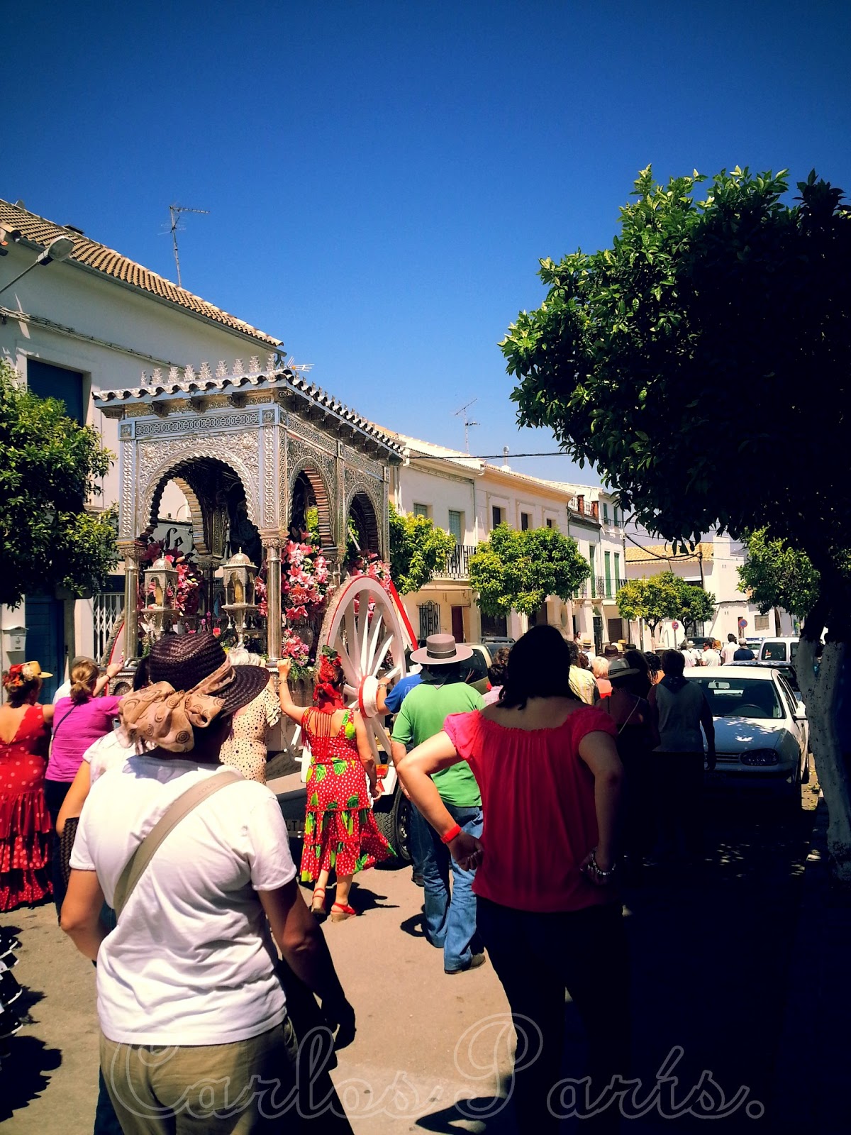 Las primeras medallas y enseres de la Hermandad serian así mismo realizadas por D. Miguel Moreno y con este primer bagaje, entraba nuestra Hermandad en el Rocío por el puente del Ajolí portando a caballo el Simpecado D. Antonio Sánchez Ramírez.