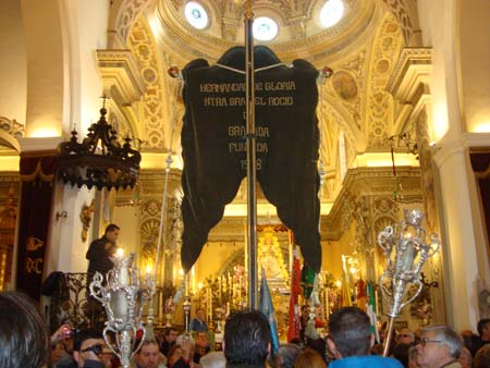 El diseño de nuestra Enseña se debe a D.Miguel López Escribano y magnifico bordado que lo plasmaron las Monjas de la Piedad, resaltando la imagen de la Virgen en oro y plata realizada por el orfebre granadino D. Miguel Moreno.