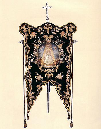 El actual Simpecado, en terciopelo azul bordado en oro fino, fue bendecido por el obispo de Huelva, Monseñor García Lahiguera el 25 de mayo de 1969, en el cincuentenario de la coronación canónica de la Virgen del Rocío.