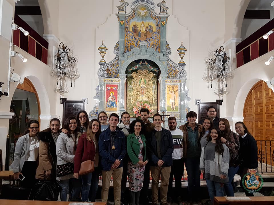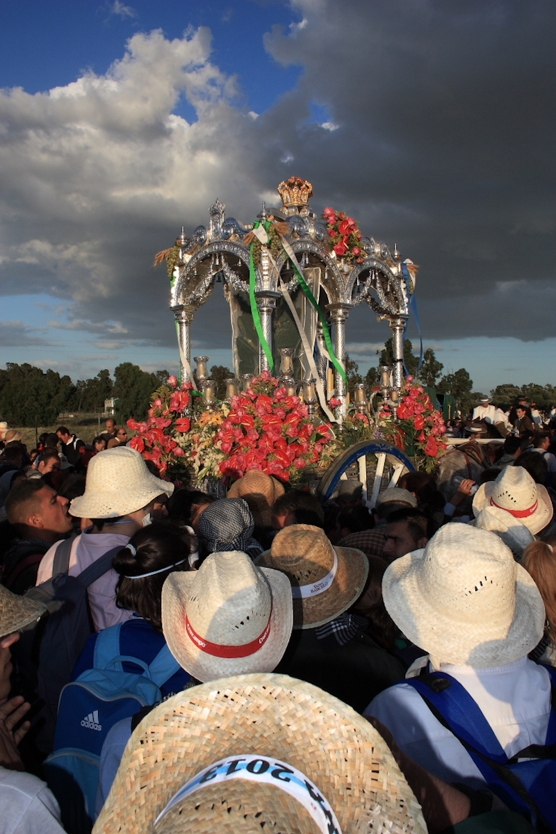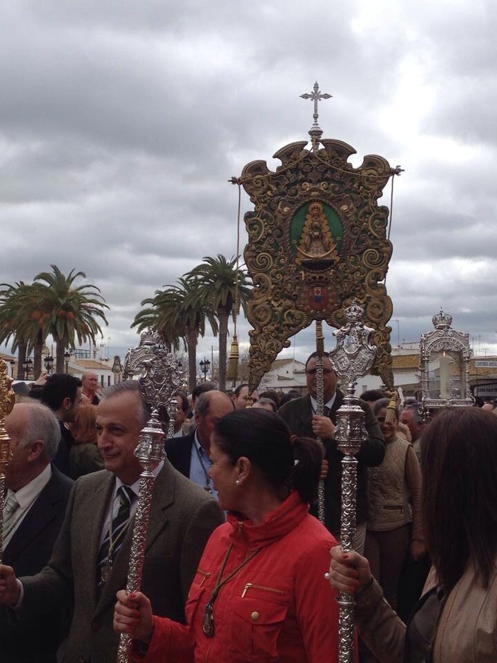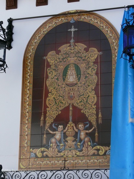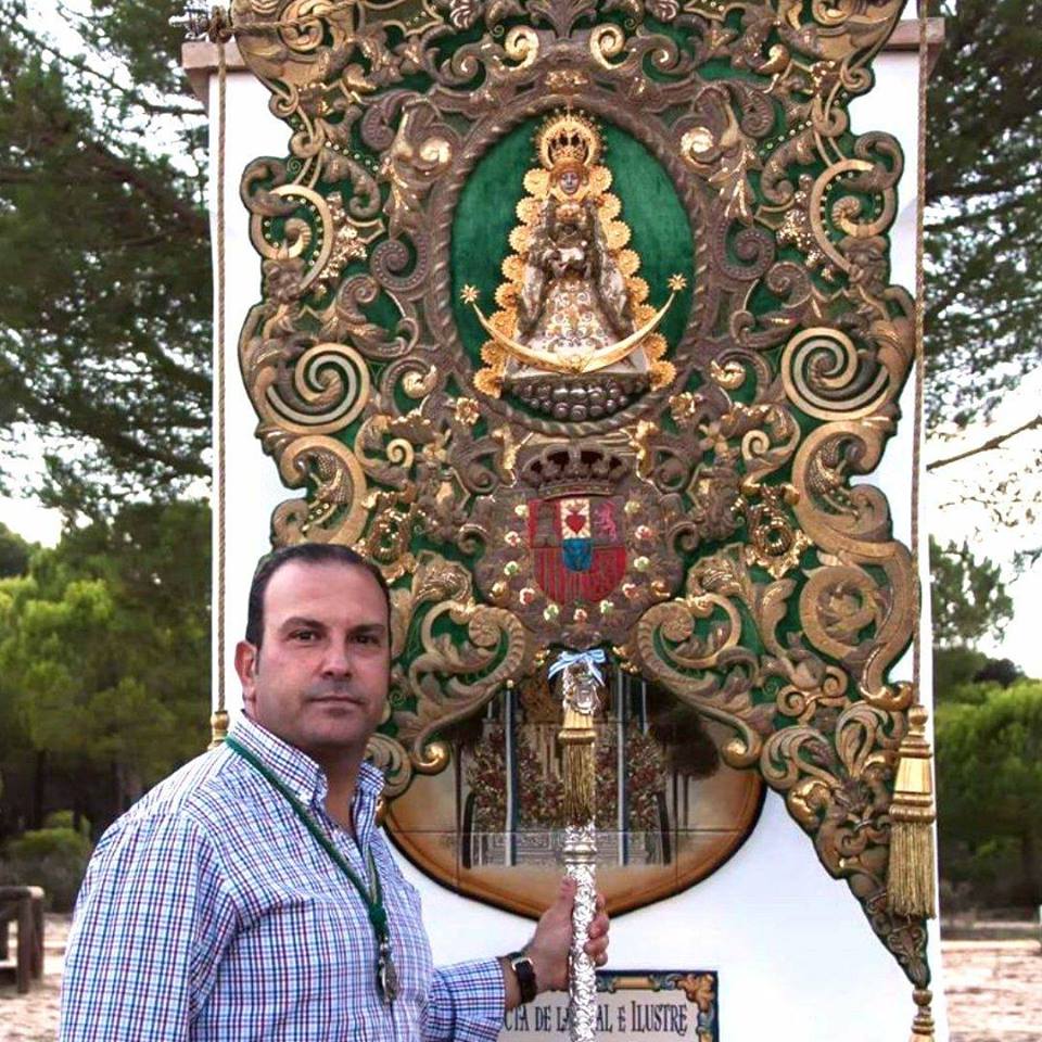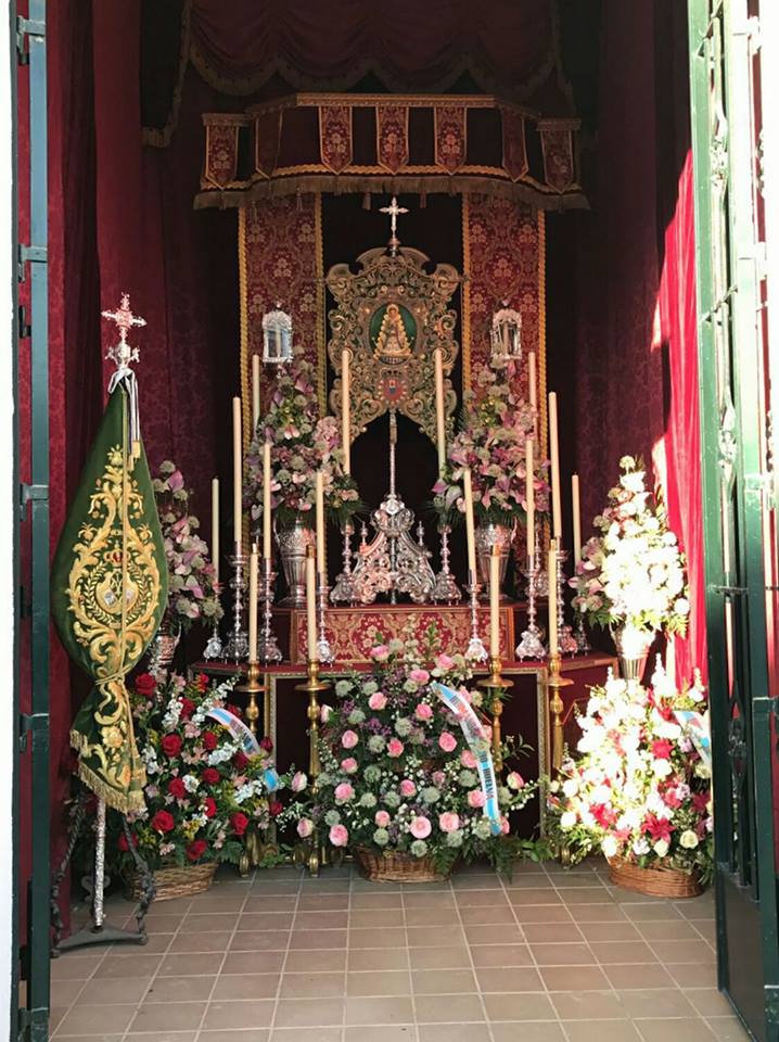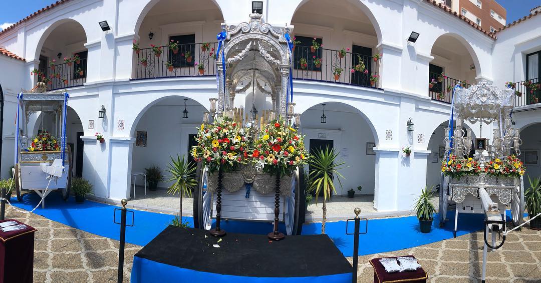 El Simpecado de la Hermandad, bordado de oro sobre raso blanco con una imagen de la Virgen en el centro, se llevaba en los primeros años a caballo, hasta que los rocieros fundadores y los vecinos de las calles de Enmedio y Berdigón costearon una carroza de madera que sirviera de trono al mismo. La Hermandad estaba inicialmente establecida canónicamente en la Iglesia de la Concepción, y en el año 1897, siendo Hermano Mayor el Sr. Gilabert Cordero, se elabora un nuevo Reglamento en el que se establece celebrar una novena anual en dicha parroquia, y una misa a la Virgen antes de la salida para la Romería.