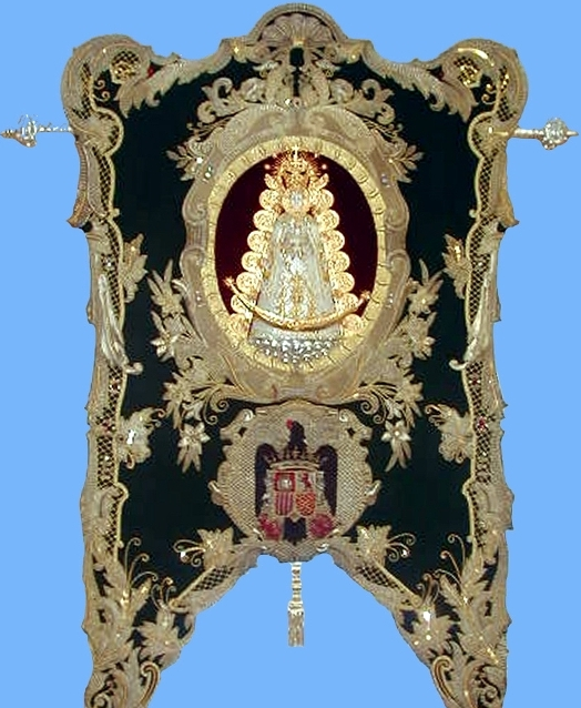 Sustituyó al de 1939 en 1964, siendo bordado en oro sobre terciopelo verde en las R.R. M.M. Adoratrices de Huelva, por encargo del Hermano Mayor D. Manuel Garrido Garrido. Hizo los caminos de la Hermandad hasta 1979, ya que el año del Centenario se restauró el primitivo. Actualmente se conserva en una hornacina con la forma del escudo de Huelva en la Sala de Juntas de la casa de Huelva. Fue restaurado completamente, pasándose a tercipoelo nuevo, en 2004, en el taller de Rafael Infante de nuestra ciudad. La imagen de la Virgen, tallada en marfil, está igualmente ataviada de reina. A sus pies, a modo de cartela, el escudo de España.