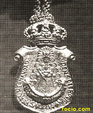 Pende de un cordón verde. Fabricada en metal plateado con la Virgen en dorado, vestida de Reina con corona y media luna a los pies. Rodeando la imagen de Ntra. Sra. figura la inscripción «Real Hermandad de N.S. del Rocío de Huelva». La parte superior, la adorna una corona Real y en la punta el nombre de la ciudad con una torre a la izquierda y un ancla a la derecha (pertenecientes al escudo de la ciudad).
