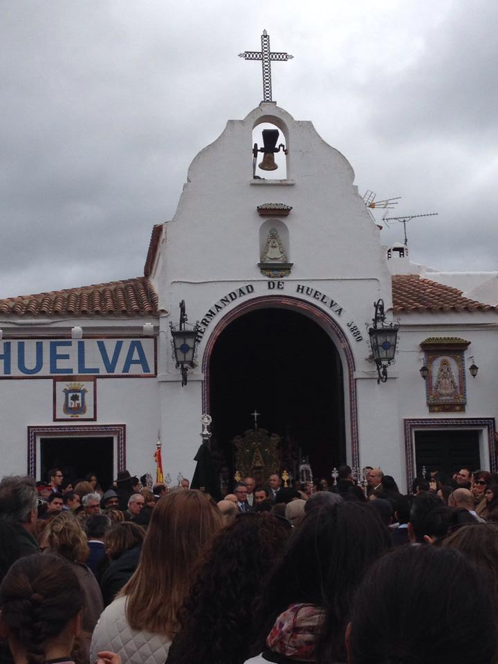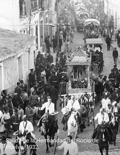 En el año 1881 hizo su primera presentación oficial en la Romería del Rocío, y para conmemorar la fundación se acuñó la primera medalla de la Hermandad, en fecha posiblemente cercana, siendo Huelva la primera que tuvo medalla propia. En esos primeros años se celebraba en Huelva en la calle de Enmedio una velada rociera, que alcanzó su apogeo más tarde en la calle Berdigón. En 1886 fue la Placeta el escenario que resultó más idóneo, siendo el mayordomo el encargado de su organización, cada vez más cuidada y haciendo toda clase de esfuerzos para que fuese un éxito, continuando esta costumbre hasta bien entrado el siglo XX. En aquellas fechas, los preparativos para el adorno de los carros eran una alegre convivencia, donde intervenían los brotes de fe popular acompañados del buen humor y del gusto artístico, a base de cintas, lazos, pabellones de gasa y farolillos de papel.