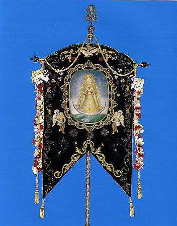 Data de 1978 y es de terciopelo verde oscuro, con bordados en oro fino que recorren su contorno y, en su centro, un lienzo irregularmente oval con la Virgen del Rocío, muy difuminada, original de Rivera, restaurador del Museo del Prado de Madrid. A ambos lados del óvalo, dos ángeles ataviados a la usanza campera. Su bordado tuvo dos etapas: la primera, ejecutada por Sobrinos de Elena Caro, y la segunda por las hermanas del convento malagueño de Cañete la Real.
