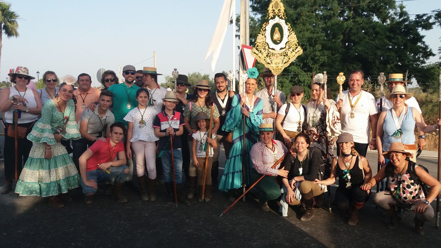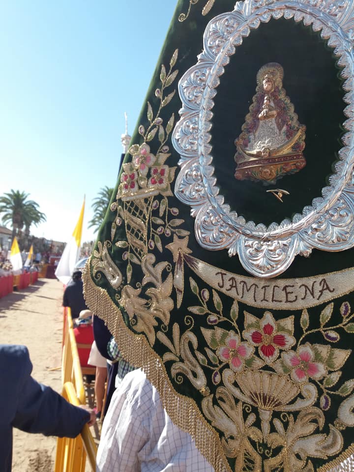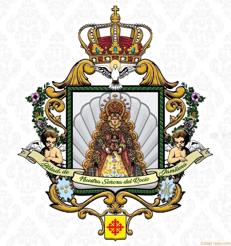 La medalla de la Hermandad representa a la Santísima Virgen del Rocío en un óvalo central, flanqueada a ambos lados por ramas de olivos, símbolo del fruto de la tierra de la que proceden sus peregrinos, el olivo, tan presente en la Campiña jiennense donde se ubica la localidad de Jamilena. En la parte inferior, una leyenda con el nombre de la Hermandad, y una cartela que lleva inscrita la Cruz de Calatrava, escudo de la villa.