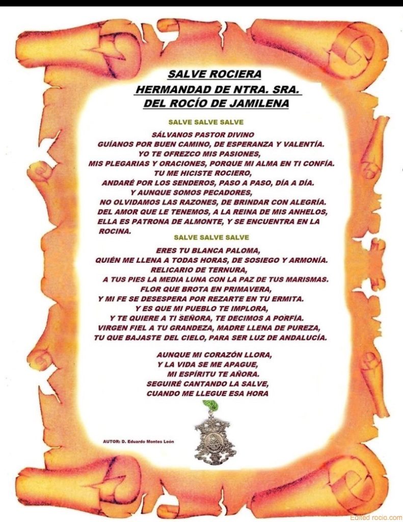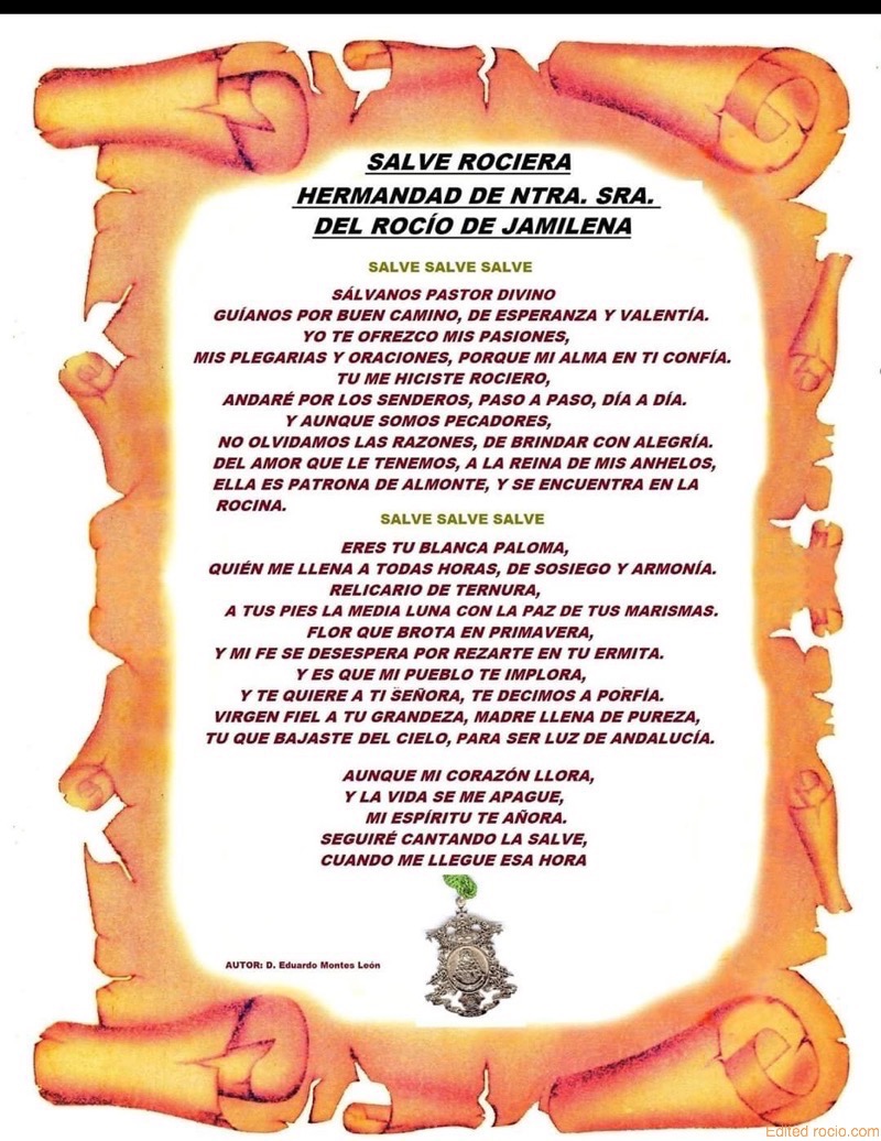 La salve de la Hermandad fue escrita por D. Eduardo Montes. Aparece en la siguiente imagen: