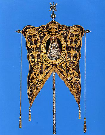 En 1961 finaliza en los talleres del convento de religiosas del Servicio Doméstico, de Jerez de la Frontera, la confección del Simpecado, bordado en oro sobre terciopelo de Lyon de color morado. En el centro, rodeada de un óvalo de amplia cenefa, la imagen de la Virgen y el Niño, realizada en plata de ley por el orfebre Eduardo Seco.