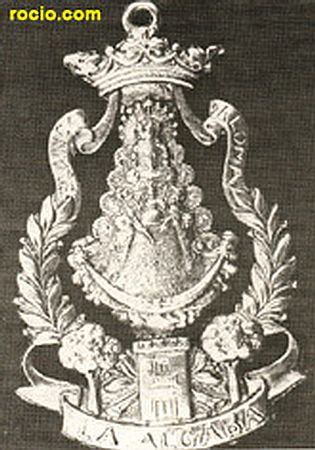 Medalla realizada en metal color plata, donde podemos observar que la imagen de Ntra. Sra. está unida al resto de la medalla por solo dos puntos conservando dicha imagen, los elementos decorativos característicos, ráfagas y media luna a los pies. En la parte superior destaca la corona en recuerdo de los marqueses de La Algaba y en la parte inferior la torre de los Guzmanes rodeada de dos árboles, que bién pueden recordar el origen arábigo de la palabra Algaba, que significa bosque.