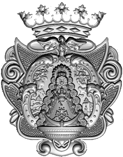 Fabricada en metal de plata, su forma exterior corresponde al escudo de la Ciudad de Linares, y en el centro de ella porta el medallón central del Simpecado de Nuestra Hermandad, formado este por una peana de plata portando la imagen de la Stma. Virgen del Rocío con una media luna de plata sobre sus pies; en su lado derecho inferior la imagen de la Ermita de la Patrona de Nuesra Ciudad, Nuestra Señora de Linarejos, en su lado izquierdo inferior la imagen de la Ermita del Santuario de la Patrona de Nuestra Diócesis, la Virgen de la Cabeza, así como escoltando a ambos lados en su parte superior dos Ángeles portando símbolos Marianos, todo ello coronado por una Corona Ducal.