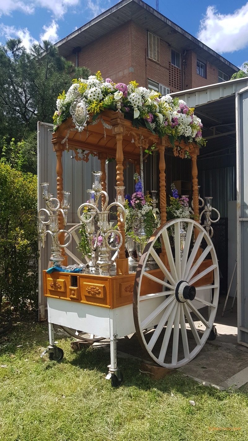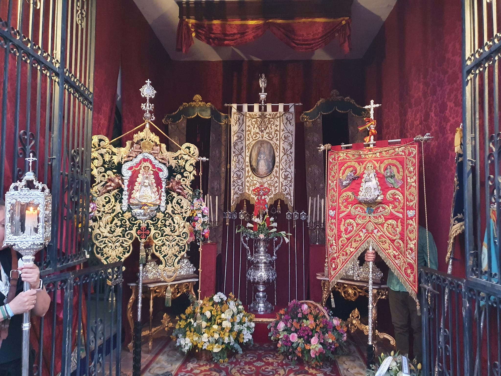 - Del taller del escultor Jesús Méndez Lastrucci han salido las imágenes de la Virgen y los ángeles, todas de vestir.La Virgen viste terno bordado en oro sobre tisú de plata color salmón, mientras que los ángeles lo hacen en dupión de seda de colores,sin bordados.