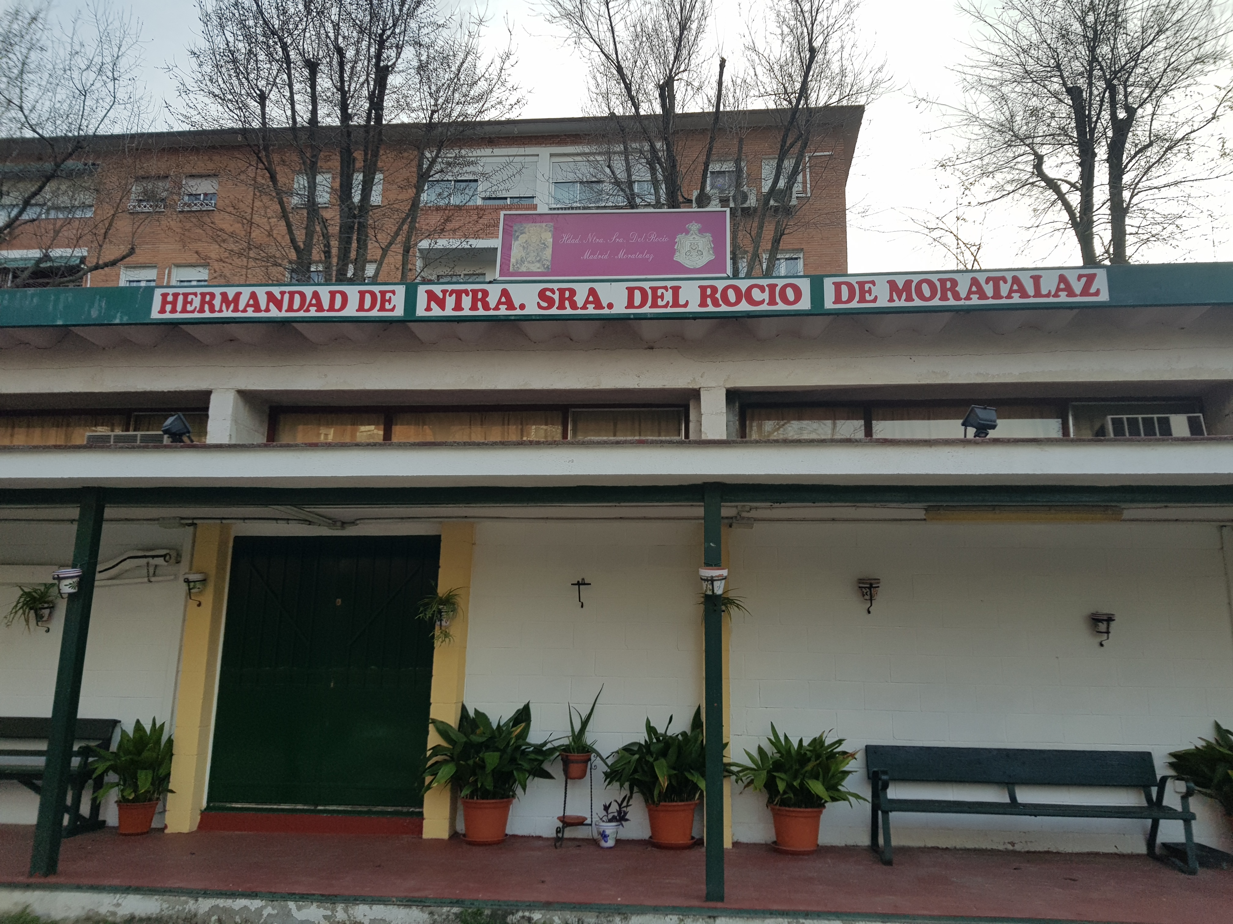 - La medalla de la Real e Ilustre Hermandad de Nuestra Señora del Rocío de Moratalaz representa un simpecado dentro de un corazón con la leyenda «Corazones Rocieros», leyenda que desde nuestros inicios llevamos en el Adn del rociero de Moratalaz, y Madrid , Ciudad a la que pertenece nuestro barrio.