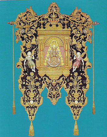 Es una pieza bordada a realce en oro y sedas sobre terciopelo morado por las hermanas Ángeles y Carmen Martín Cruz, según diseño del artista malagueño Juan Casielles del Nido. Muestra un sobrio retablo con una hornacina en forma de concha que da cobijo a la Virgen. Fue entregado a la hermandad, completamente terminado, en mayo de 1994.