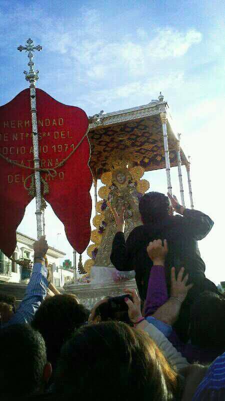 La salida de la Hermandad del Rocío de Paterna del Campo, es el jueves anterior al lunes de Pentecostes, la Misa de romeros es las 8,00 de la mañana, en el llamado carretero por los paterninos, saliendo para la Aldea inmediatamente después, haciendo una parada en la Iglesia parroquial para despedirnos de la imagen de la Virgen existente en ella.