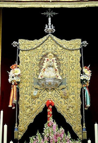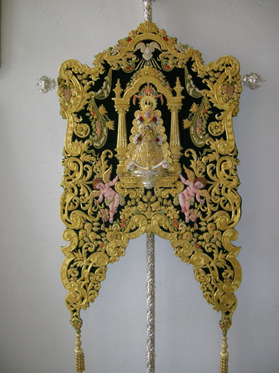 El primer Simpecado fue bordado en los talleres de Villarreal en el año 1978 y solicitado a la empresa Belloso.