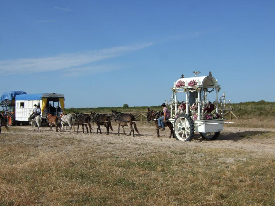 En los ratos de ocio se corrían a los ciervos por el placer de contemplar su elegancia al saltar los lentiscos. En ese duro caminar no había vuelta atrás, quien enfermaba, o se ponía de parto, daba a luz en el carro o en la carreta, o en los aledaños del vado que hacían los arroyuelos… Los carros eran tirados en su mayoría por mulos o borricos porque los caballos eran escasos en épocas remotas. Esos caminos de antes los de las sevillanas rocieras…, cuanta razón llevaban, cuanto contenido concentrado en tantos años de duro peregrinar, para contemplar la belleza de la Madre de Dios, la Santísima Virgen del Rocío…