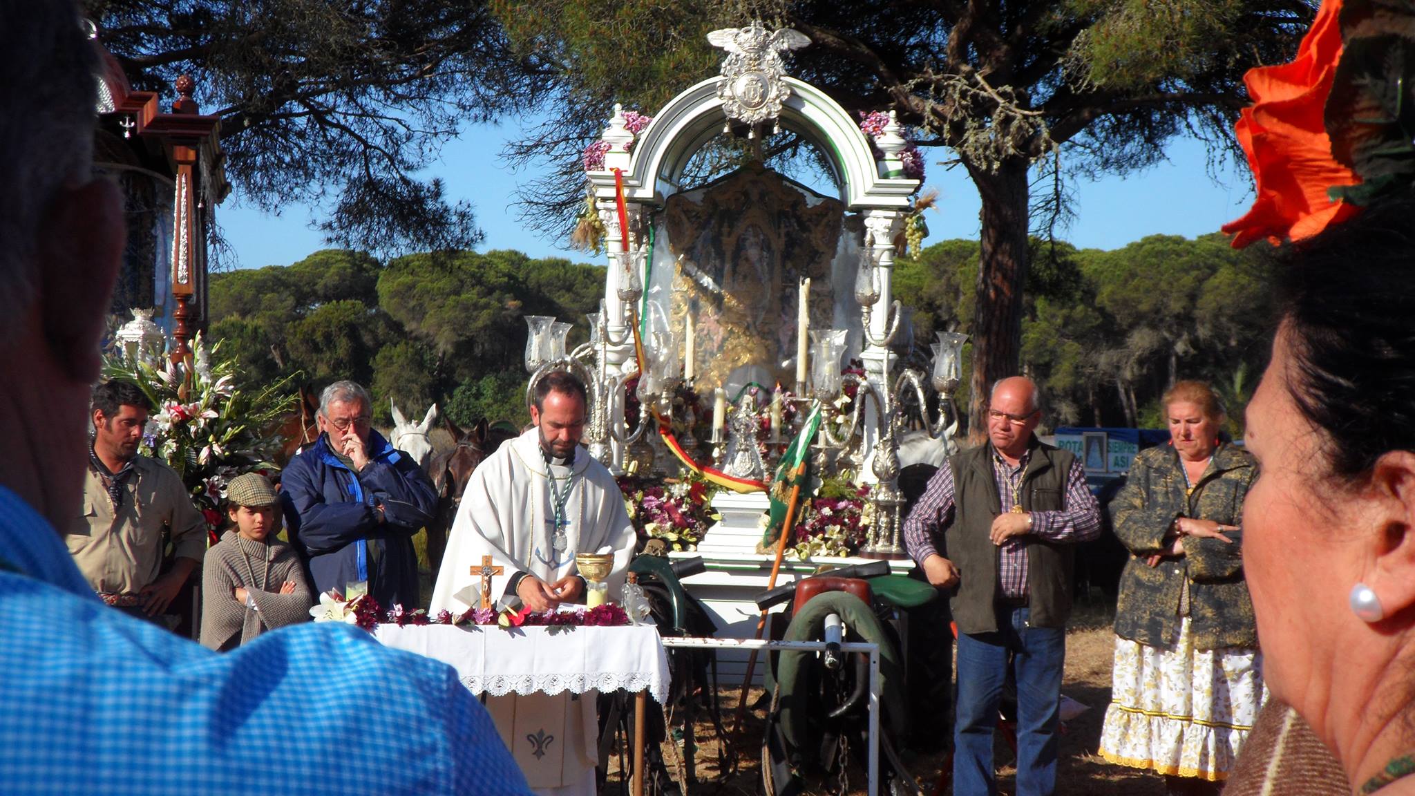 Era el de principios del siglo XX, un Rocío en el que no había llegado, ni en sueños se adivinaba, la sociedad de masas. Un Rocío íntimo y familiar que en casi nada se diferenciaba del de la segunda mitad del siglo anterior. Un Rocío por supuesto, sin tractores ni vehículos, un Rocío de colchonetas de borra de vino calentón y agua en garrafas y cantimploras.