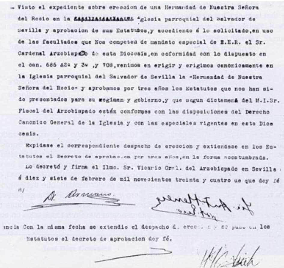 Sin que se moleste el informador de la Hermandad del Rocío de Sevilla quisiera comentar que la Hermandad se funda en 1933 y en 1951 es cuando hace su primera romería. También comentar que la Salve de la Hermandad , Sálvame, Rocío Sálvame no es popular pués su autor es Antonio Rodríguez Ferrera . Saludos y gracias por atenderme