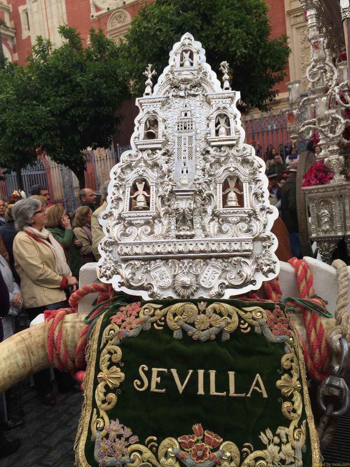 Dichos galones están bordados con la inscripción: “HDAD. DEL ROCIO DE SEVILLA”.