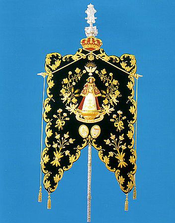 Fue donado por el pueblo de Villarrasa y confeccionado por doña Dolores Moya. La talla de la Virgen, vestida de Pastora, fue esculpida en madera de cedro por el escultor Luis Álvarez Duarte. Alrededor de la Pastora, hojas de vid y racimos de uvas, con dos ángeles, y, arriba, la paloma del Espíritu Santo. Bajo la peana de la Virgen, una cinta sostenida por dos ángeles en la que se lee: “Reina y Pastora”.