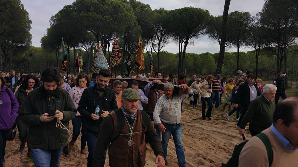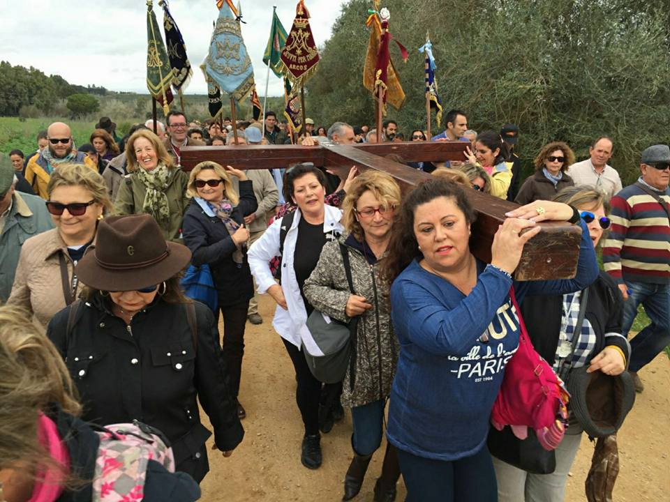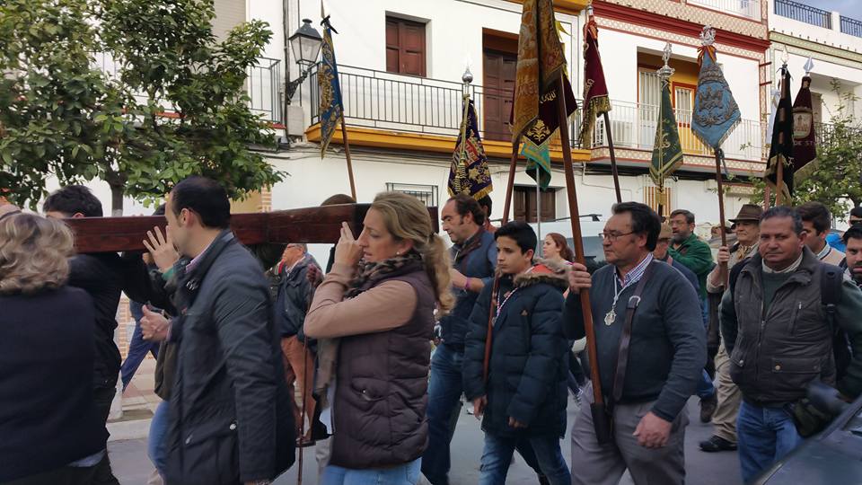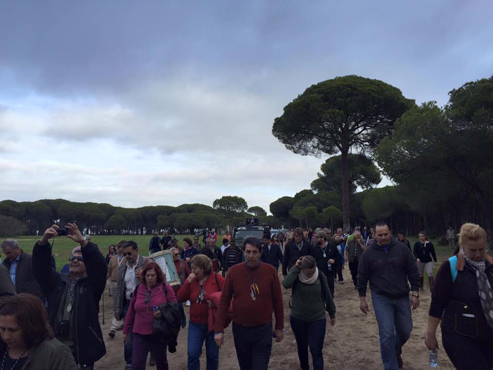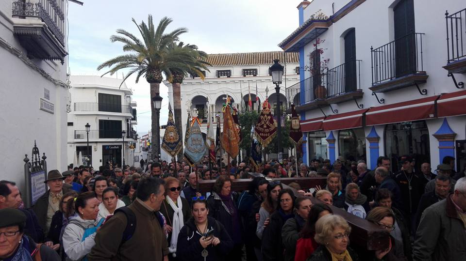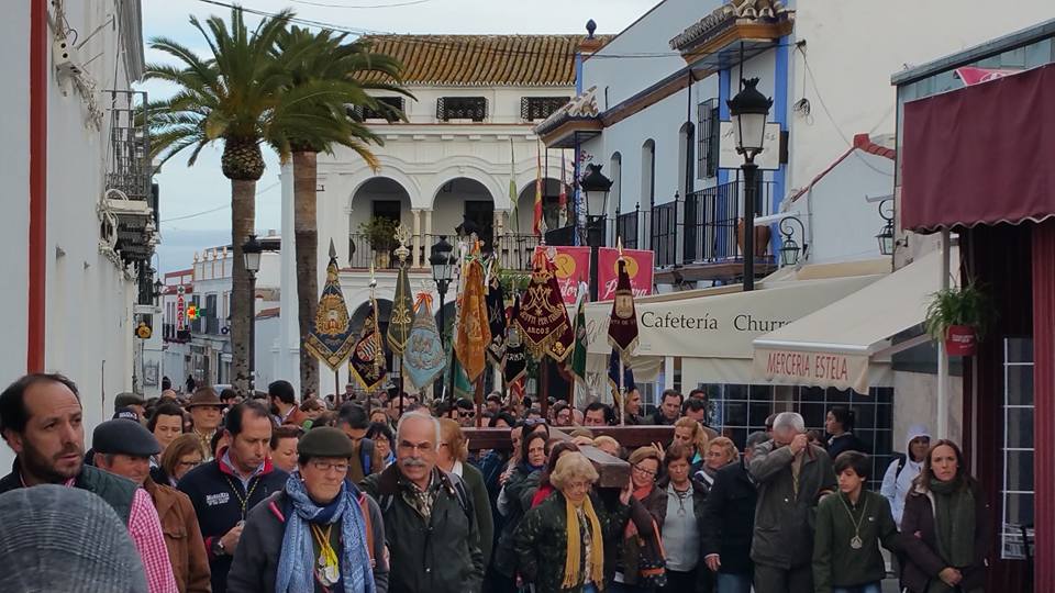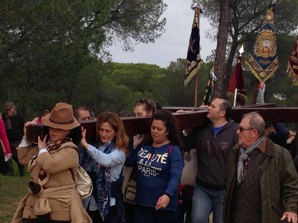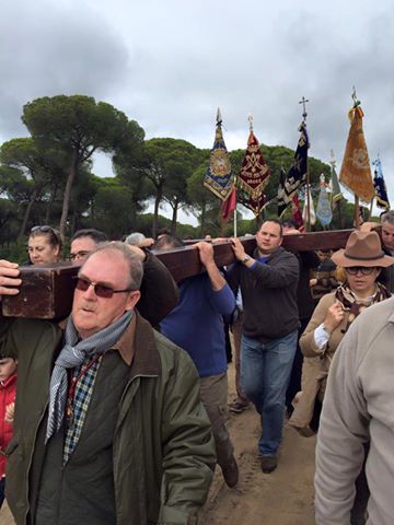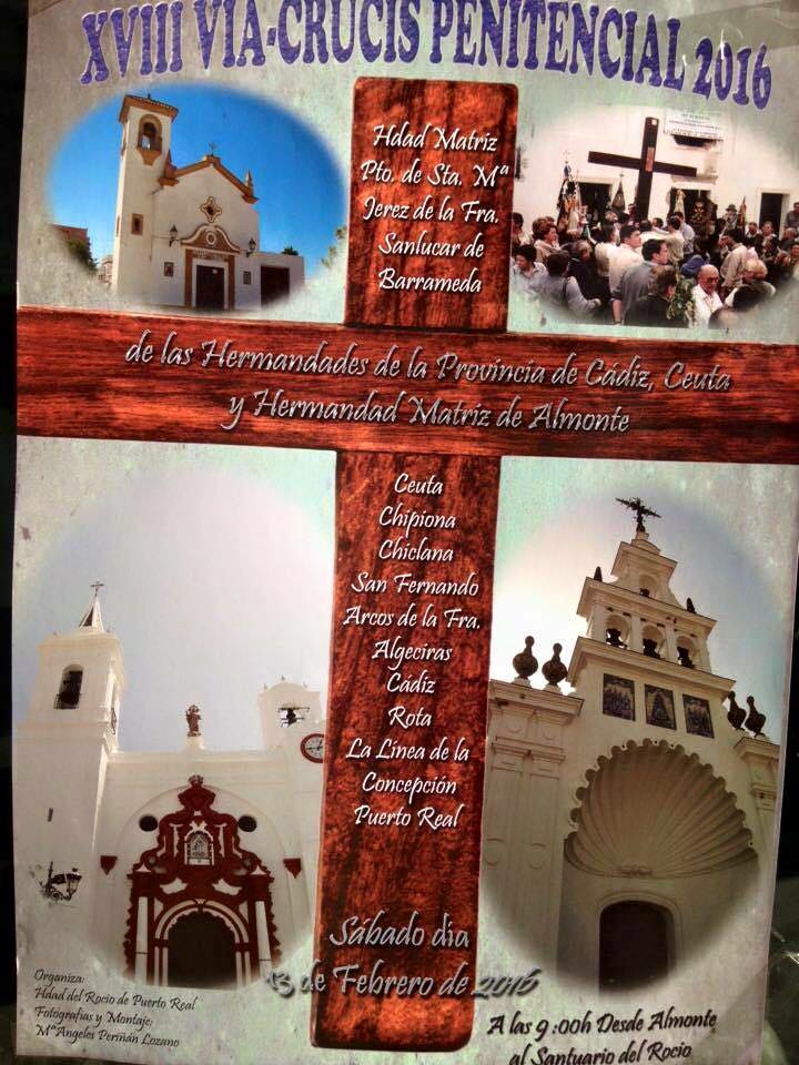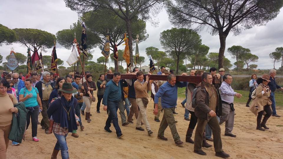 las Hermandades Rocieras de la Diócesis de Ceuta y Cadiz organizan un Via Crucis desde Almonte al Rocío el 13 de febrero de 2016.