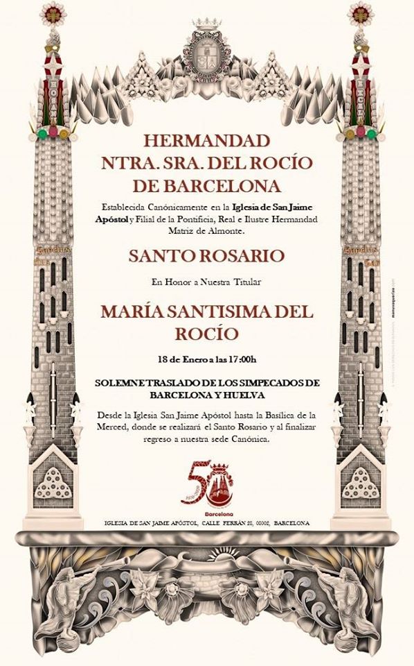 Las Hermandades de Huelva y Barcelona juntas ante el Altar con motivo del 50 Aniversario Fundacional de nuestra ahijada, la Hermandad del Rocío de Barcelona.