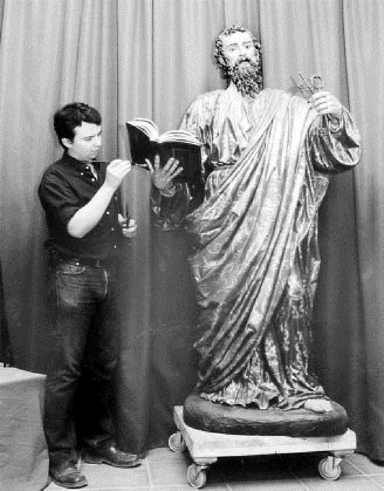Talla de San Pedro. Obra de 2002 del escultor Elias Rodríguez Picón. Capilla de Ánimas de la Parroquia de la Asunción de Almonte.