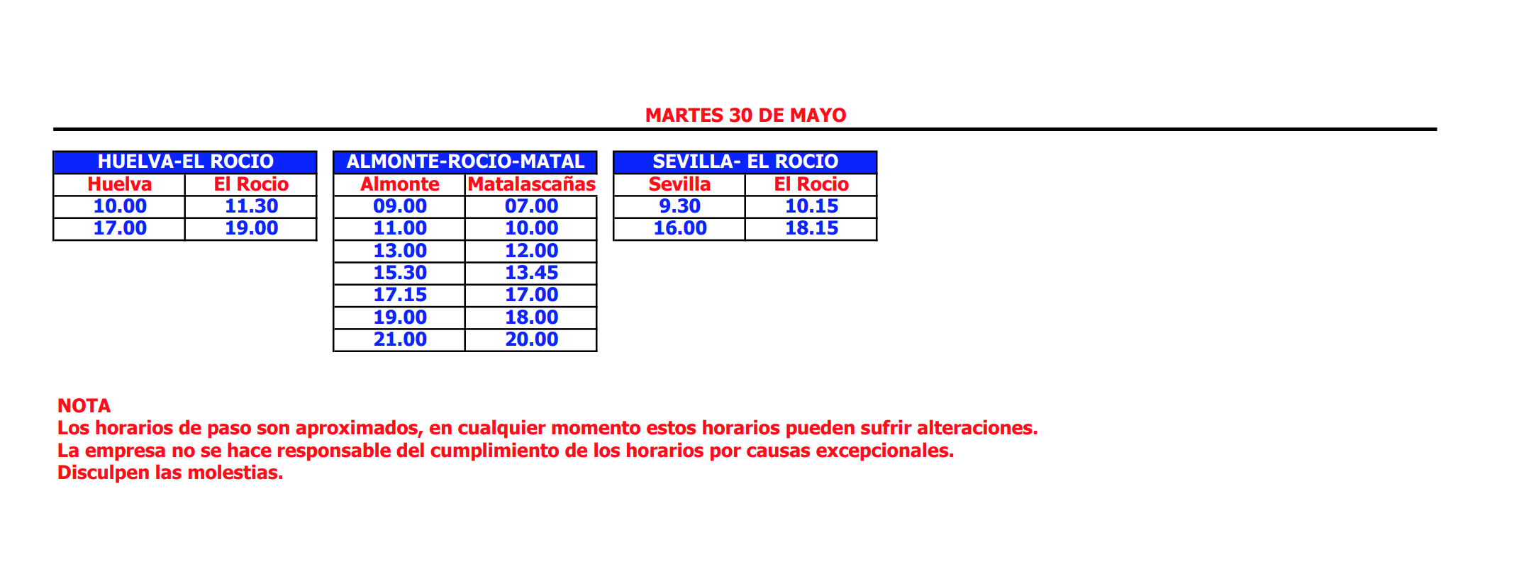 Los horarios de paso son aproximados, en cualquier momento estos horarios pueden sufrir alteraciones.