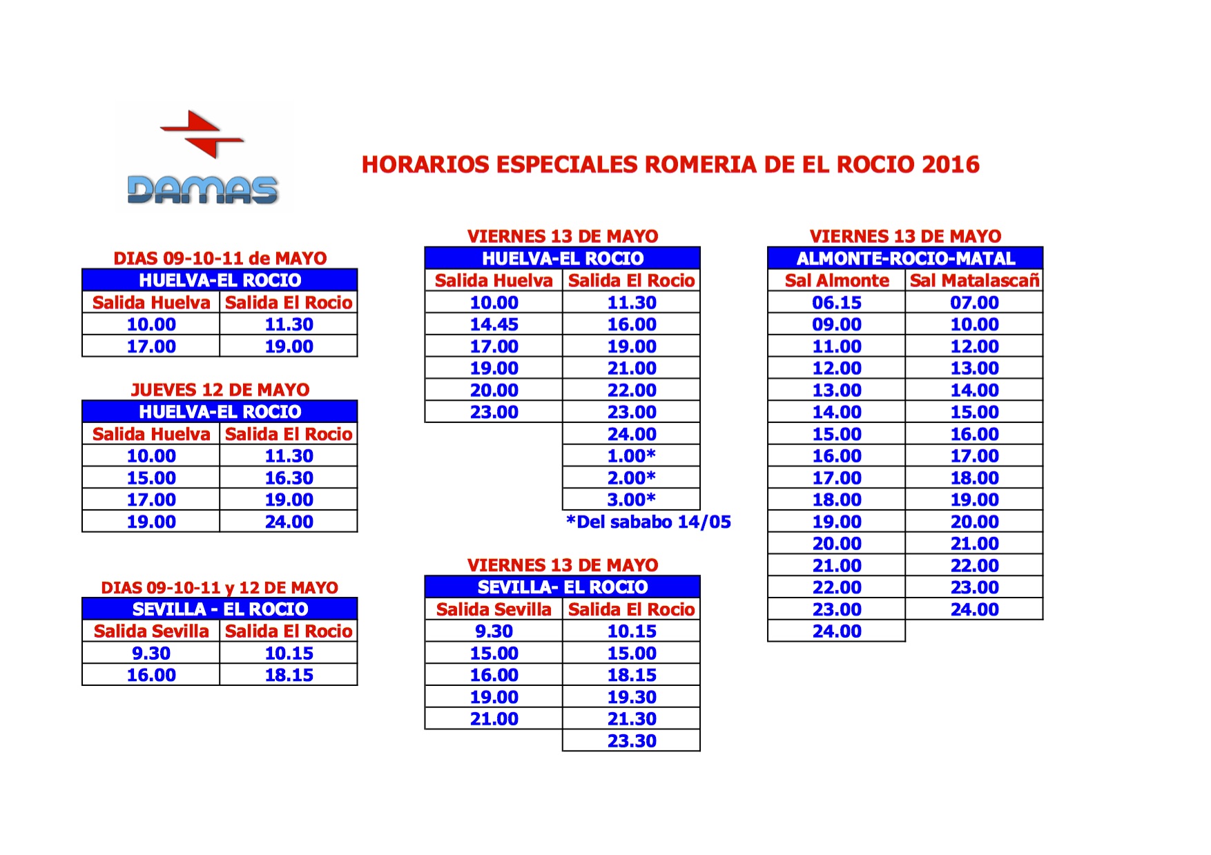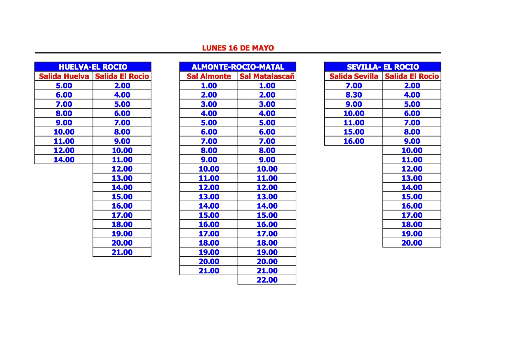 ME GUSTARIA SABER SI DE SEVILLA AL ROCIO X LOS PUEBLOS ES SU HORARIO HABITUAL O CANBIA EL VIERNES Y LA VUELTA EL LUNES X LOS PUEBLOS CUAL ES EL PRIMERO QUE VIENE