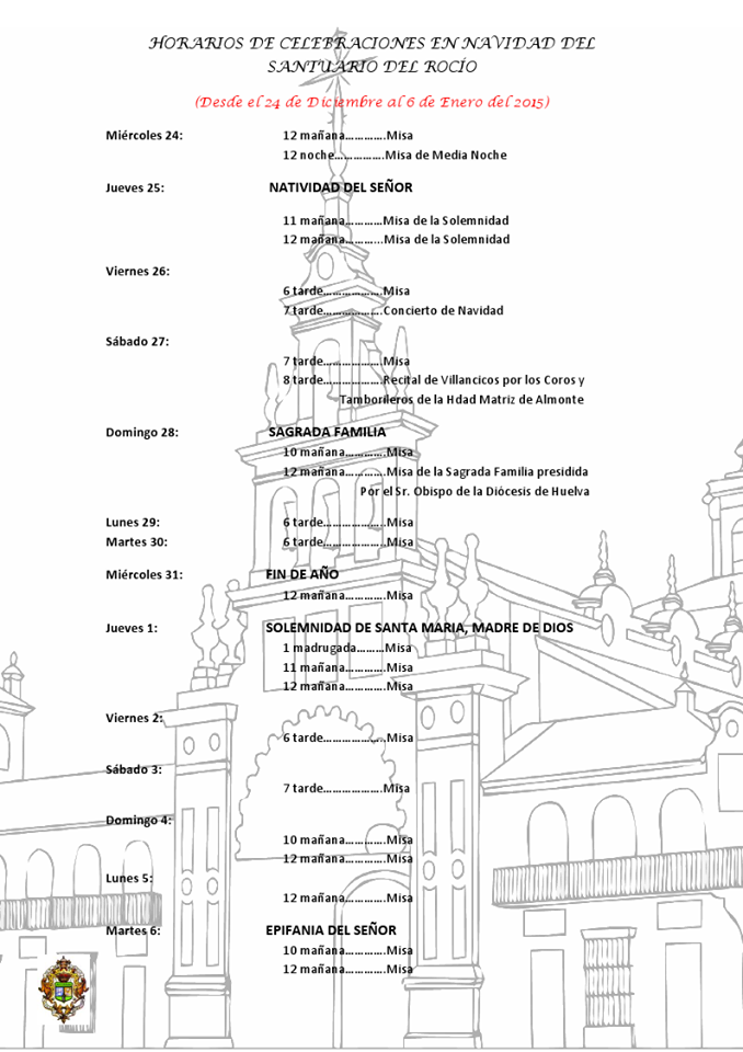 Horarios de celebraciones en el Santuario del Rocío para la Navidad 2014