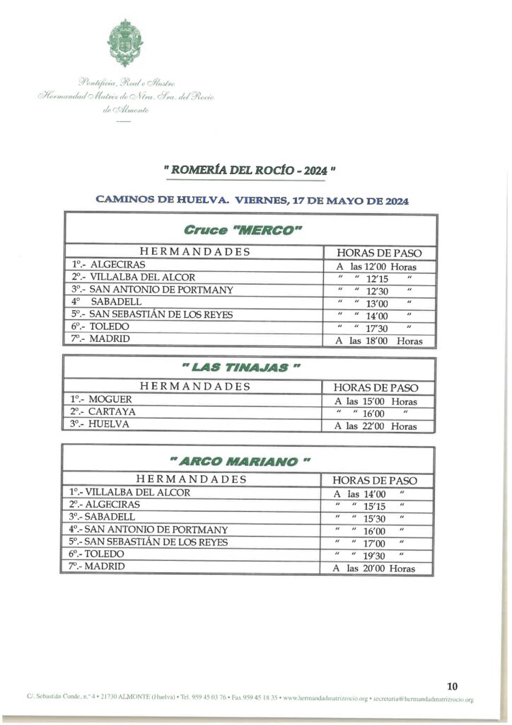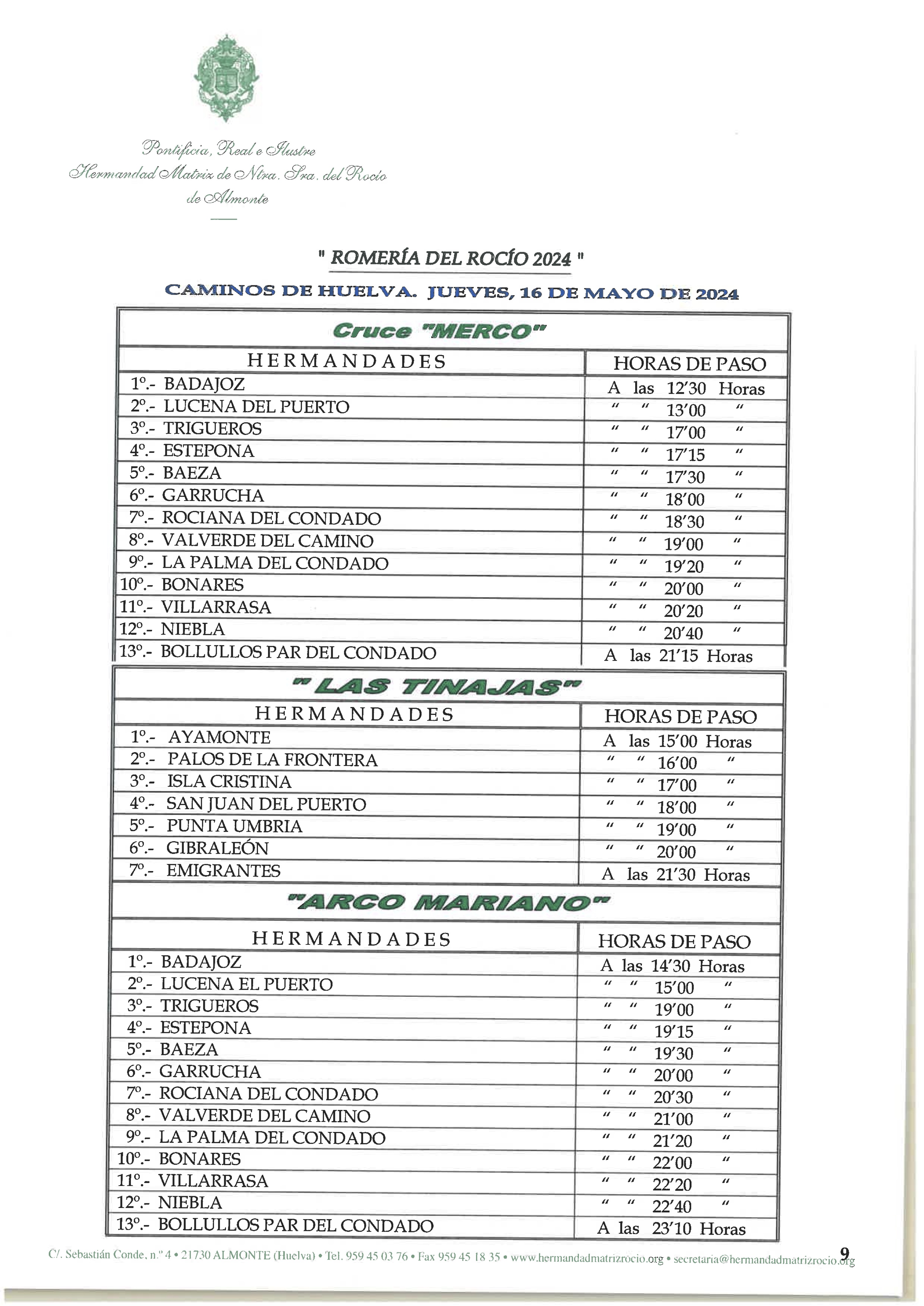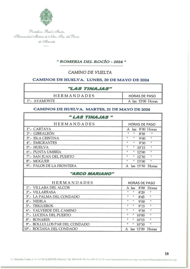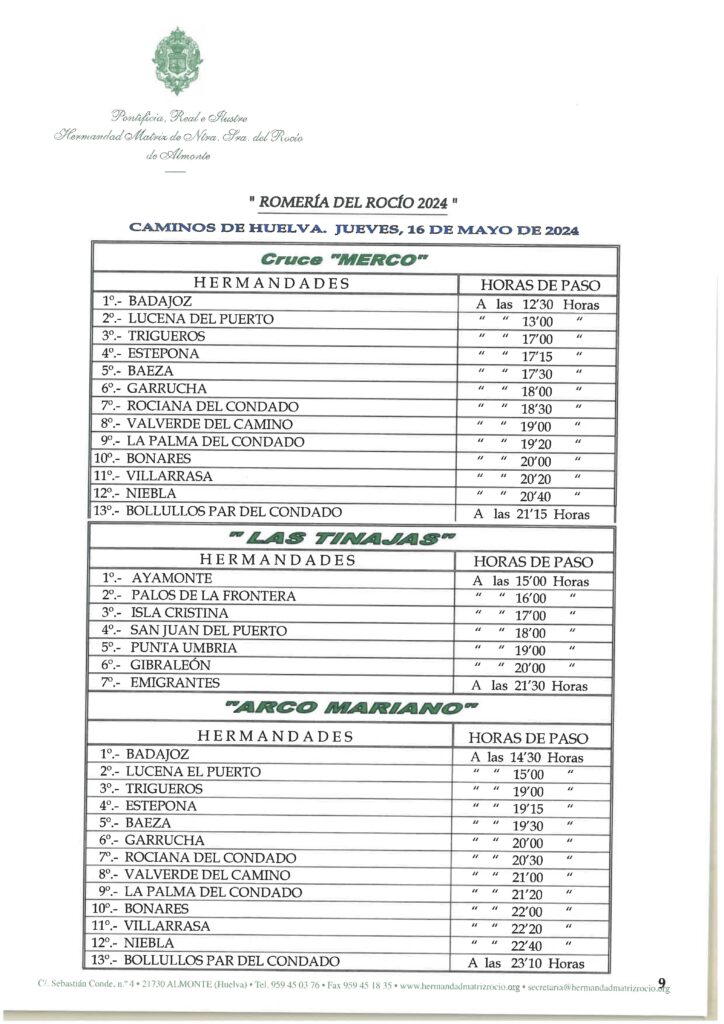Horarios de Paso Rocío 2024 – Caminos de Huelva