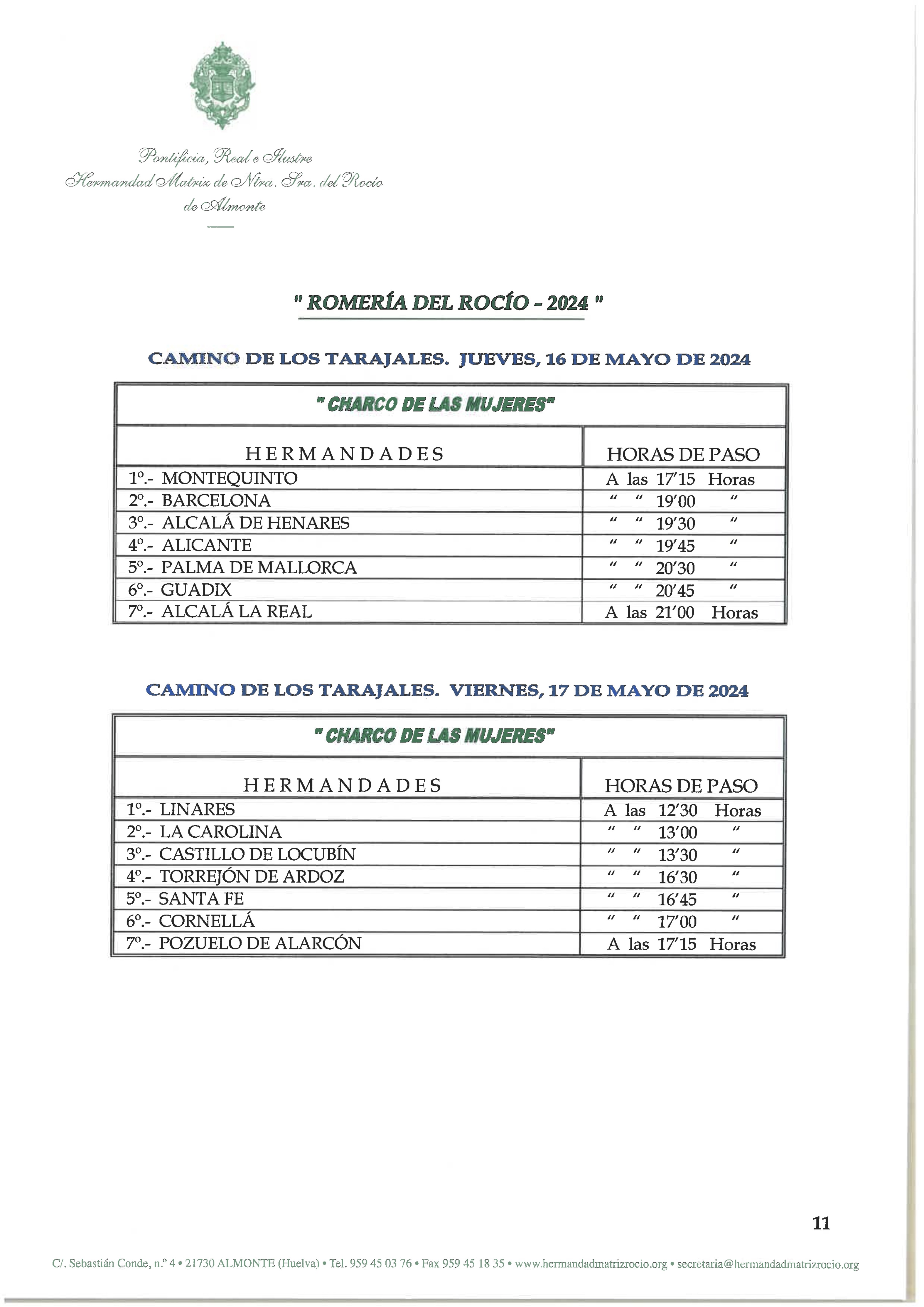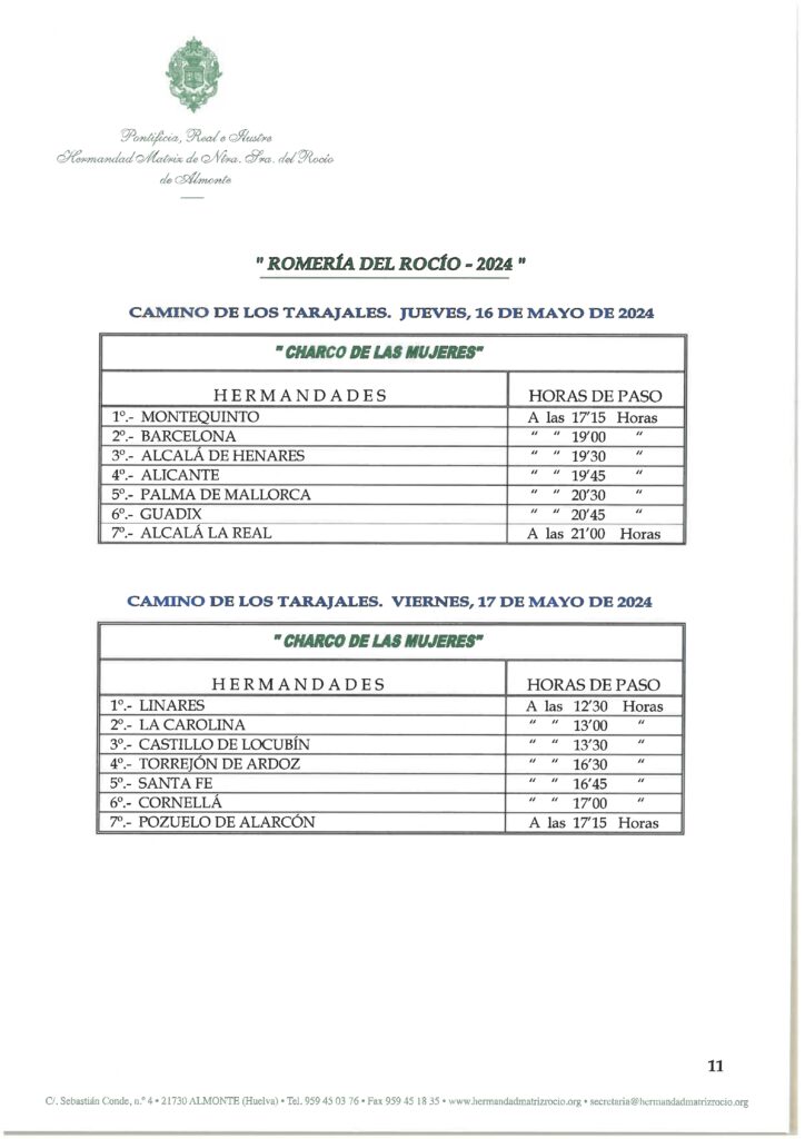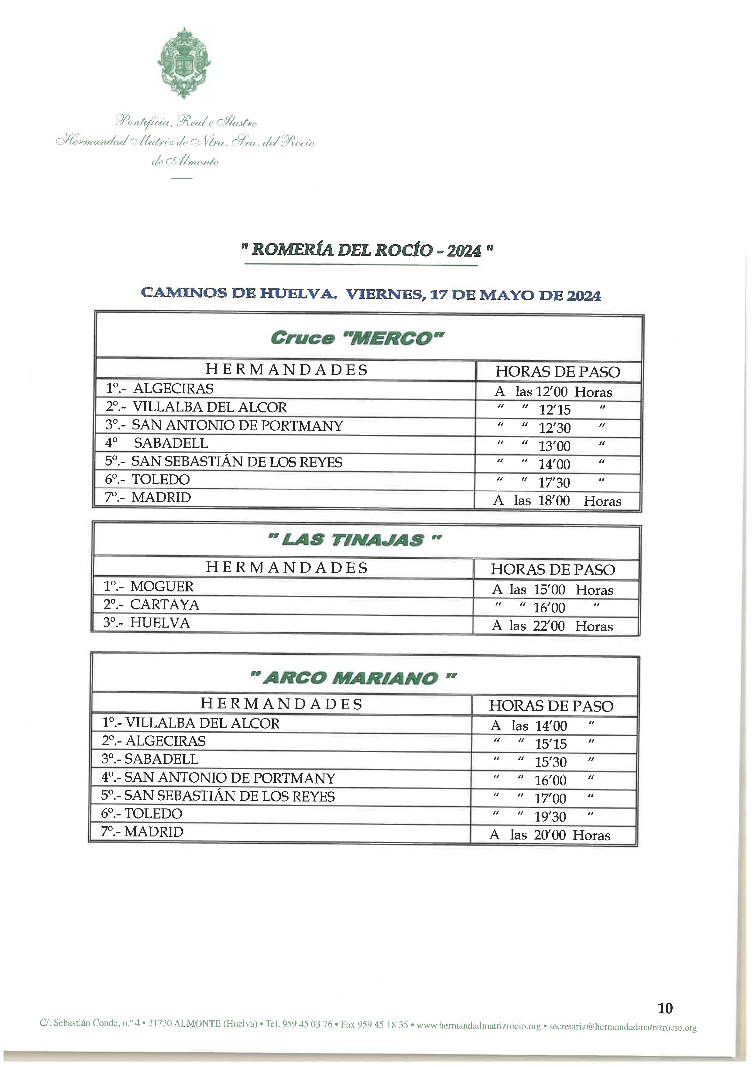 Horarios de Paso Rocío 2024 – Caminos de Huelva