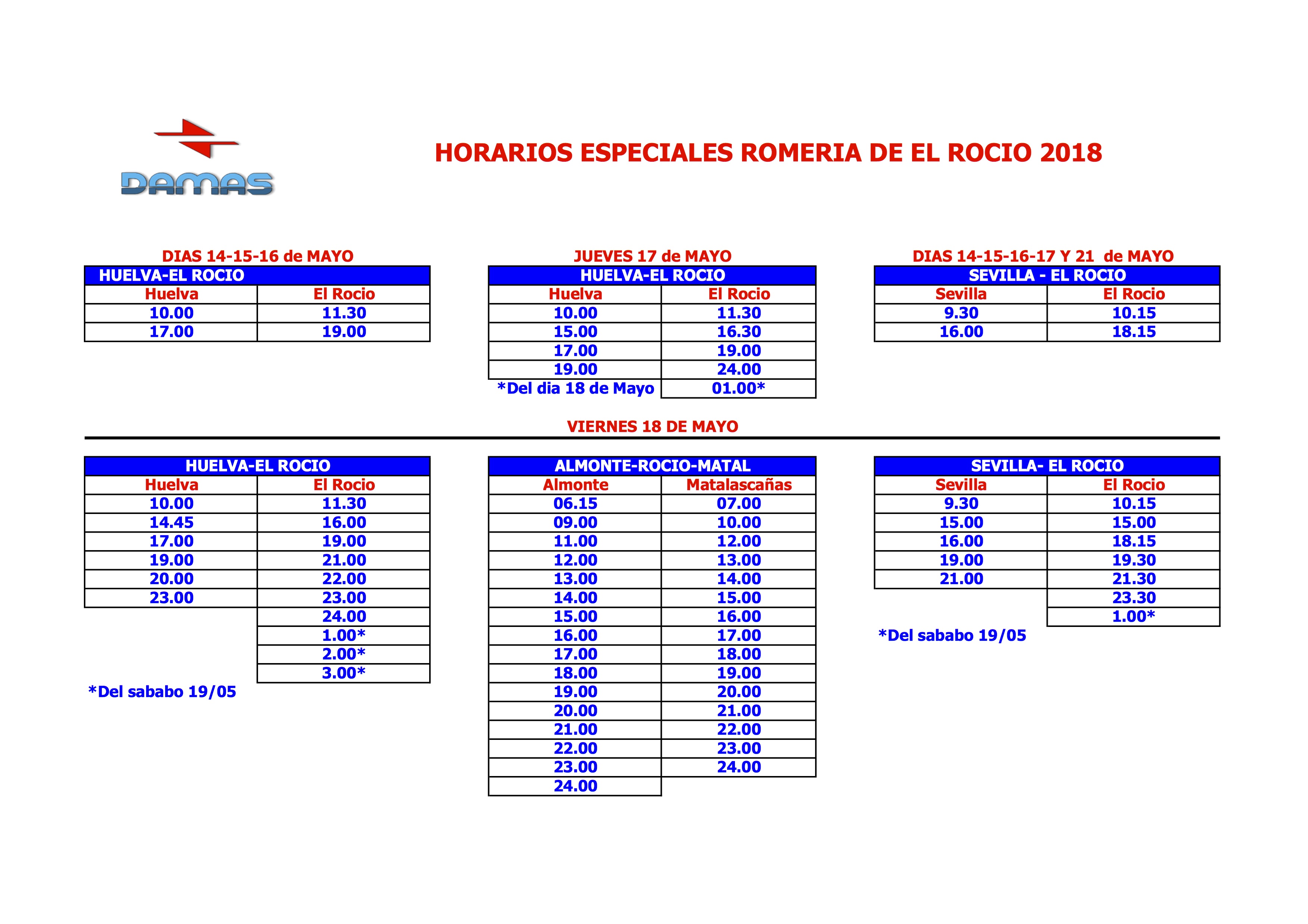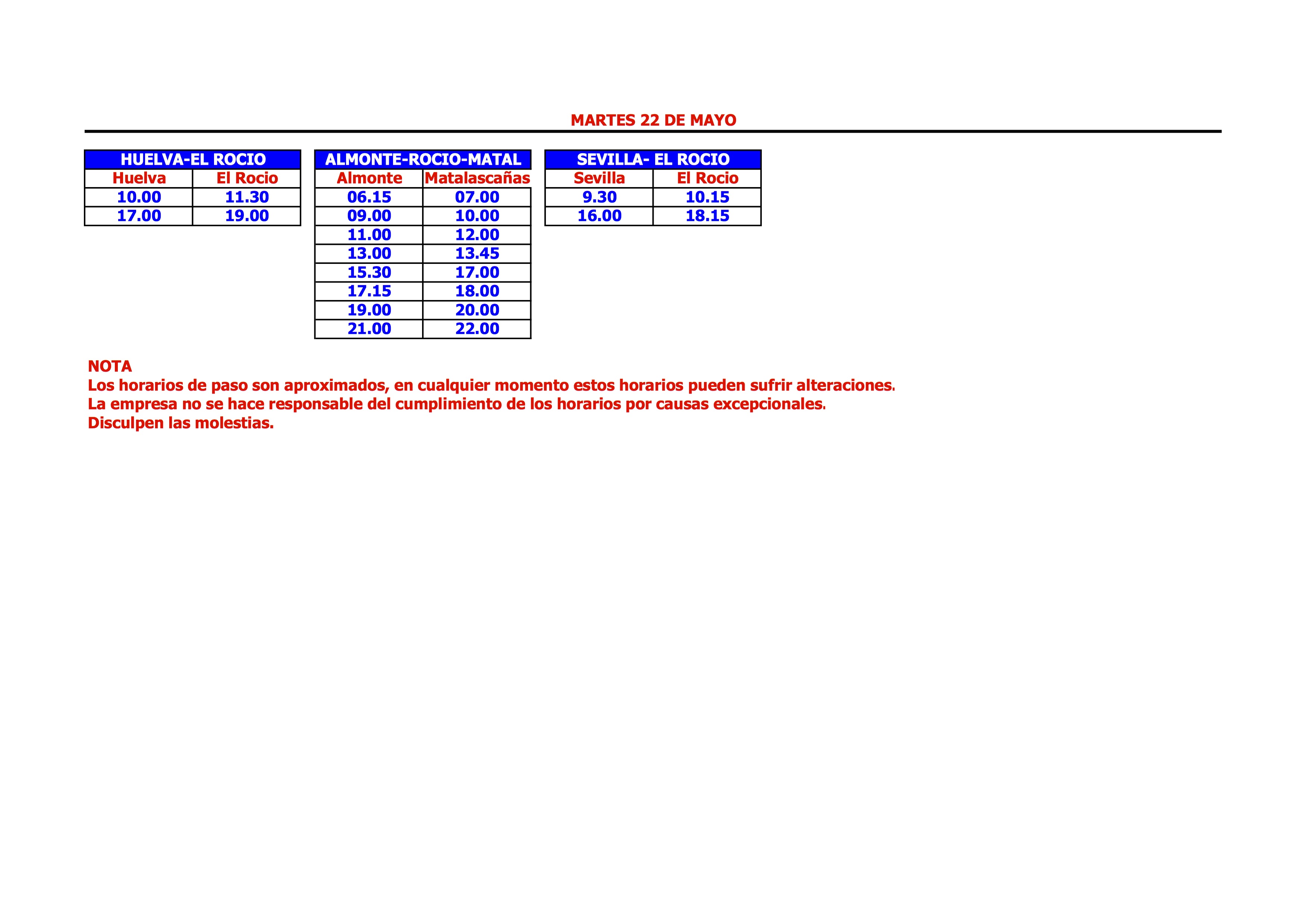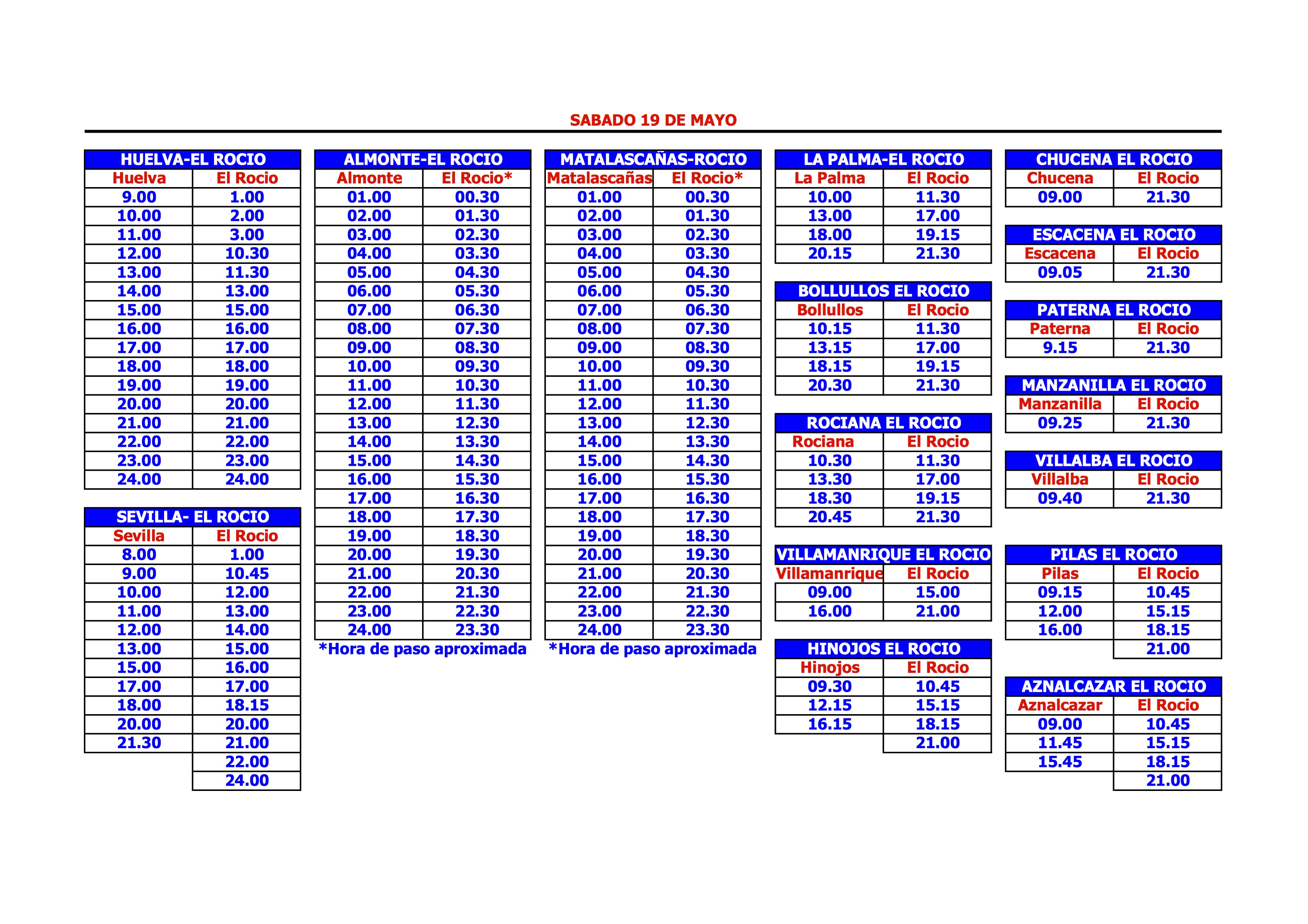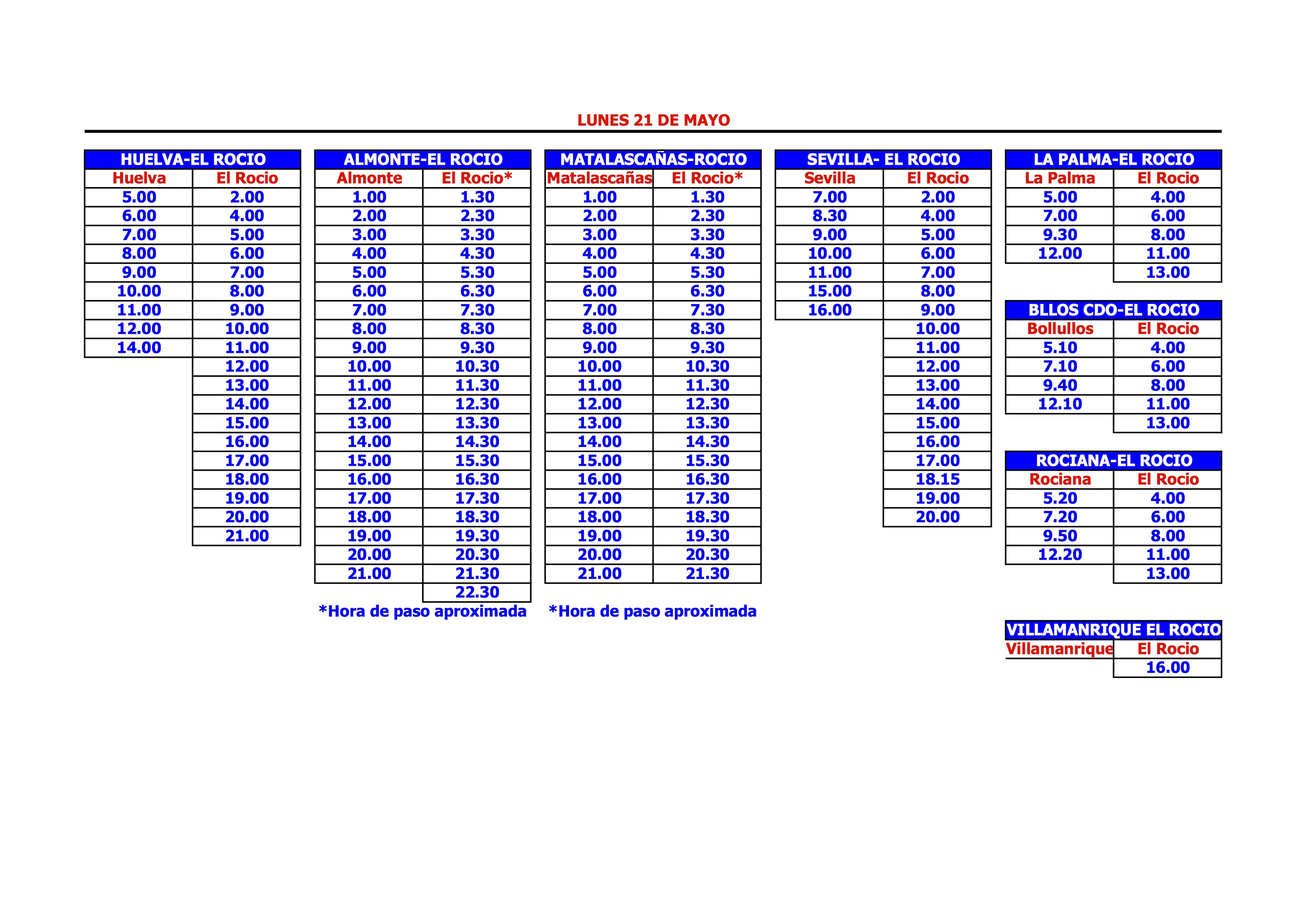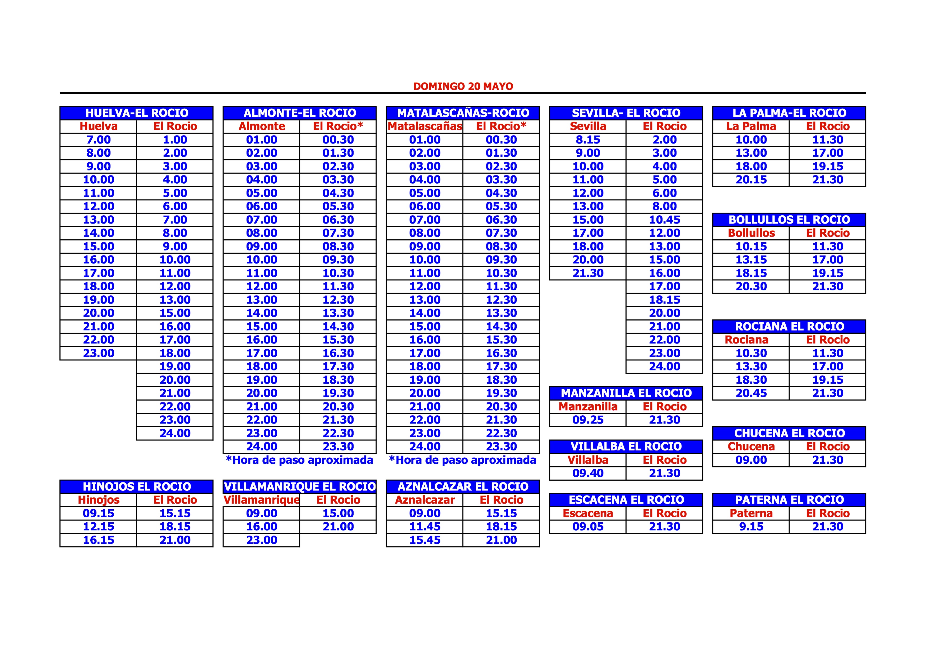 pondran horarios especiales desde el rocio a sevilla el lunes de pentecostes