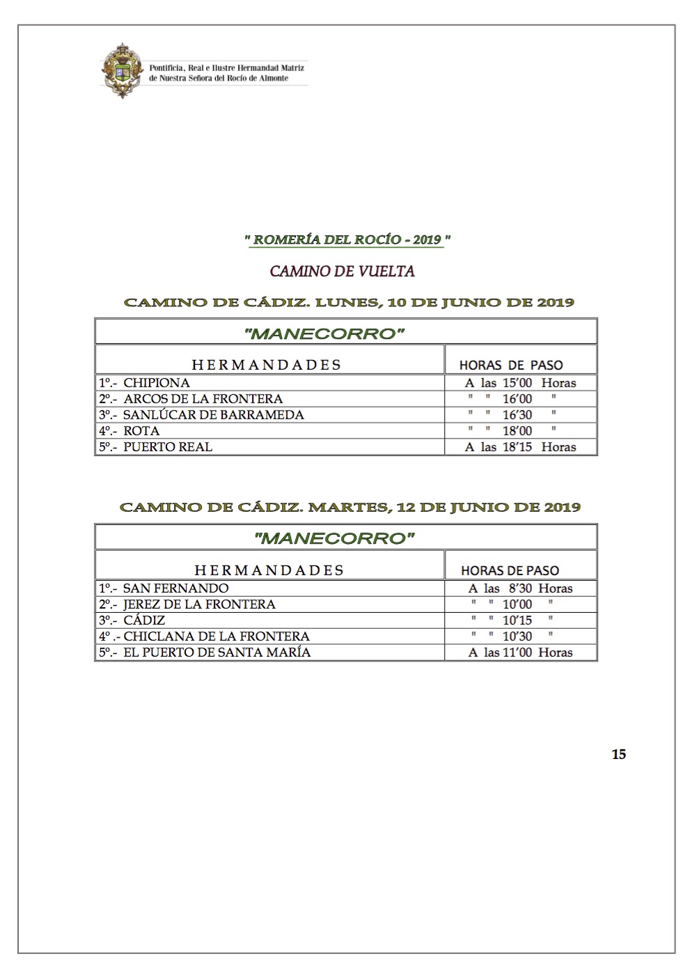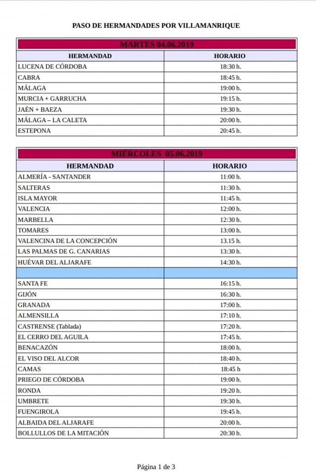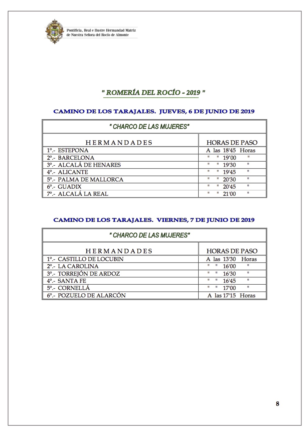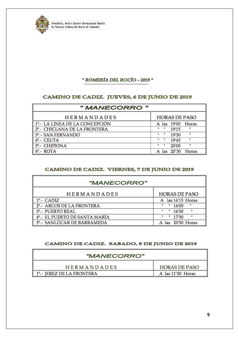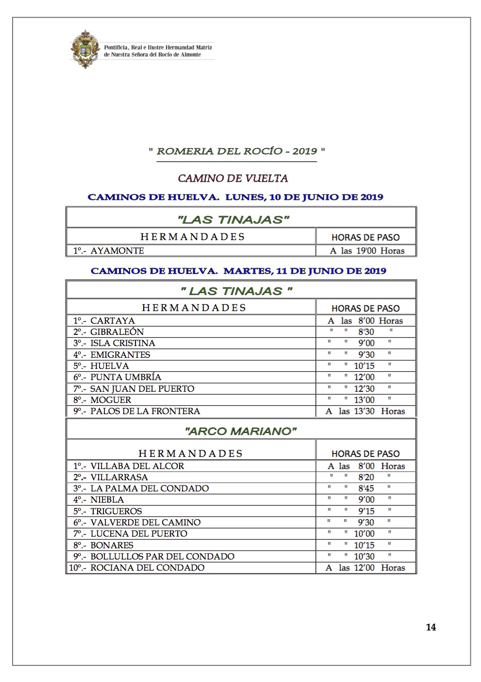 HORARIOS DEL CRUCE DE LAS HERMANDADES POR EL RÍO GUADALQUIVIR A SU PASO POR CORIA DEL RÍO 2019
