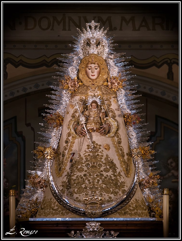 Hoy, 24 de octubre de 2012, hace justo 9 años amanecía la Santísima Virgen del Rocío en la Parroquia de la Asunción ataviada con sus galas de Reina. Dicho traje resaltaba a la vista con una peculiaridad que llamó poderosamente la atención, lucía el llamado juego orfebre rayos biselados, destacando por su aspecto primitivo plateado, ya que a finales de la década de 1970, fueron completamente dorados.
