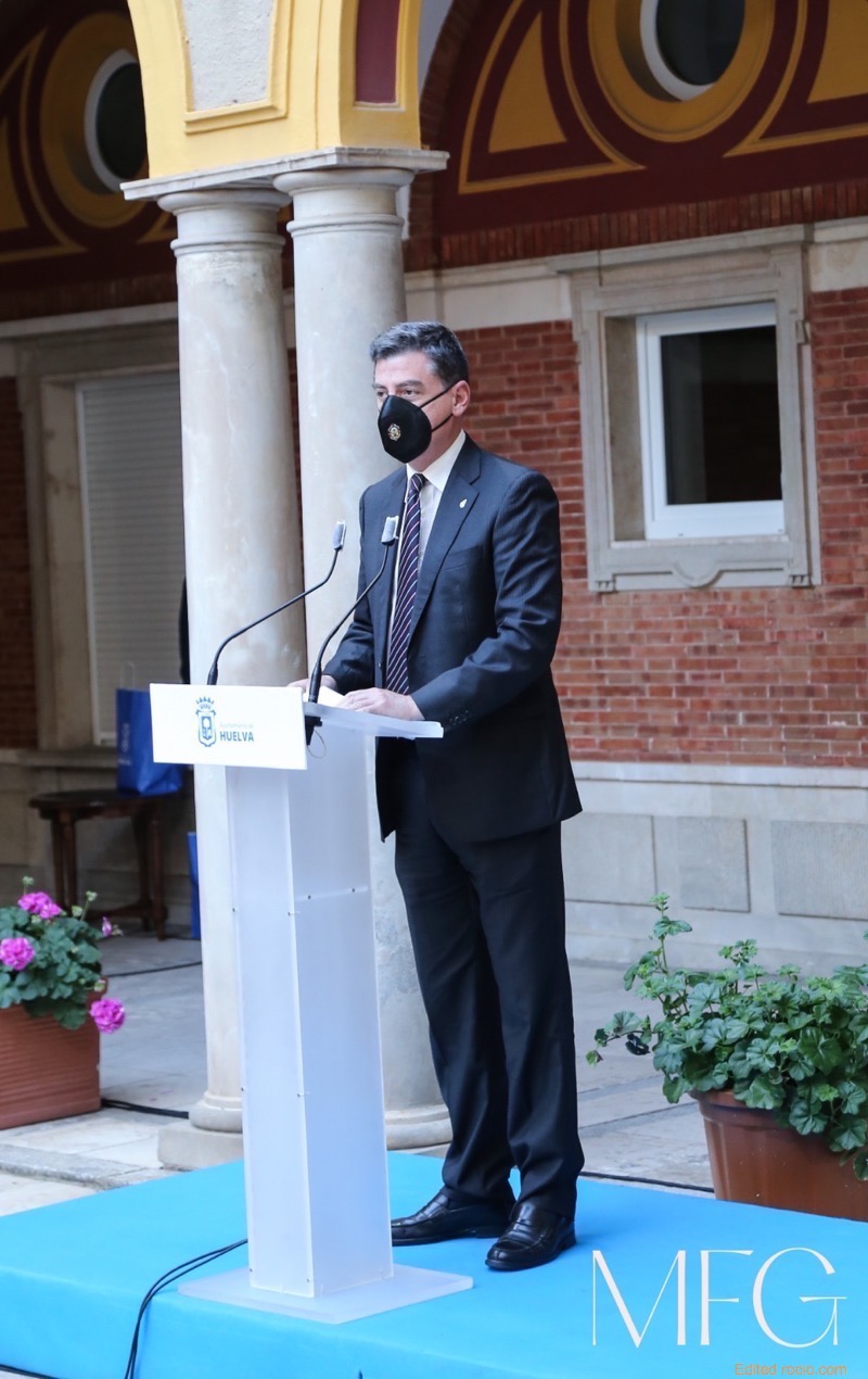 El patio central del Ayuntamiento de Huelva ha acogido la presentación de ‘Huelva es Rocío’, un gran evento destinado a celebrar Pentecostés en la capital onubense que supone un amplio programa de actos del 8 de abril al 7 de mayo, incluyendo exposiciones, conferencias, mesas redondas y otras actividades para poner de manifiesto la gran devoción por la Virgen del Rocío en la sociedad onubense.