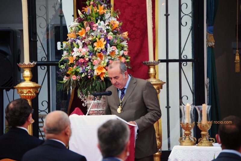 Tras finalizar la Eucaristía hubo palabras de agradecimiento de los presidentes Antonio Sánchez de Piña e Inocencio Forcén, para posteriormente hacerle entrega el primero de ellos de la medalla de la Hermandad de Huelva al presidente de Emigrantes en recuerdo de todas las vivencias que ambas entidades hermanas habían vivido durante su estancia “en su casa”.