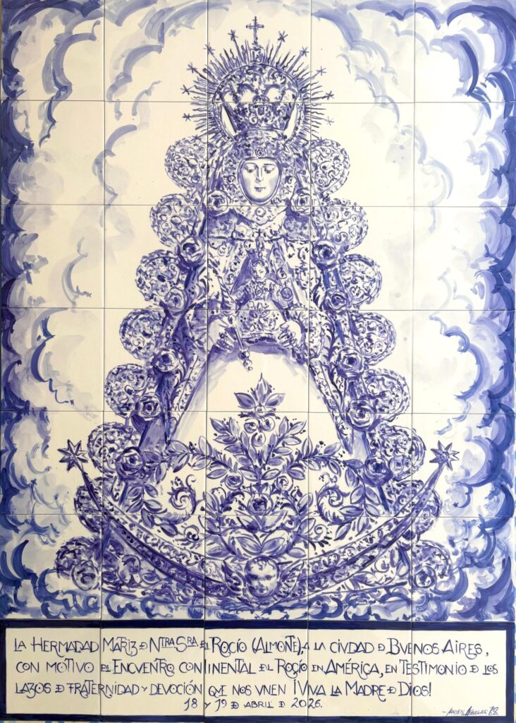 Este excelente mural cerámico de Javier Aguilar guardará memoria de este Encuentro en el Patio Andaluz, en el Parque Rosedal de Palermo, localizado en el barrio donde está la Embajada de España, en Buenos Aires. Un espacio con acento andaluz, que circunvala la Avda. Infante Isabel, en honor de la rocierísima Isabel Francisca de Orleans y Borbón, hija de los Duques de Montpensier, que encabezó la expedición que vino de España para celebrar el centenario de la Independencia de la Argentina en 1910, de la que también formaba parte en representación de la Ciudad de Huelva y de la Sociedad Colombina Onubense, Manuel Siurot Rodríguez.