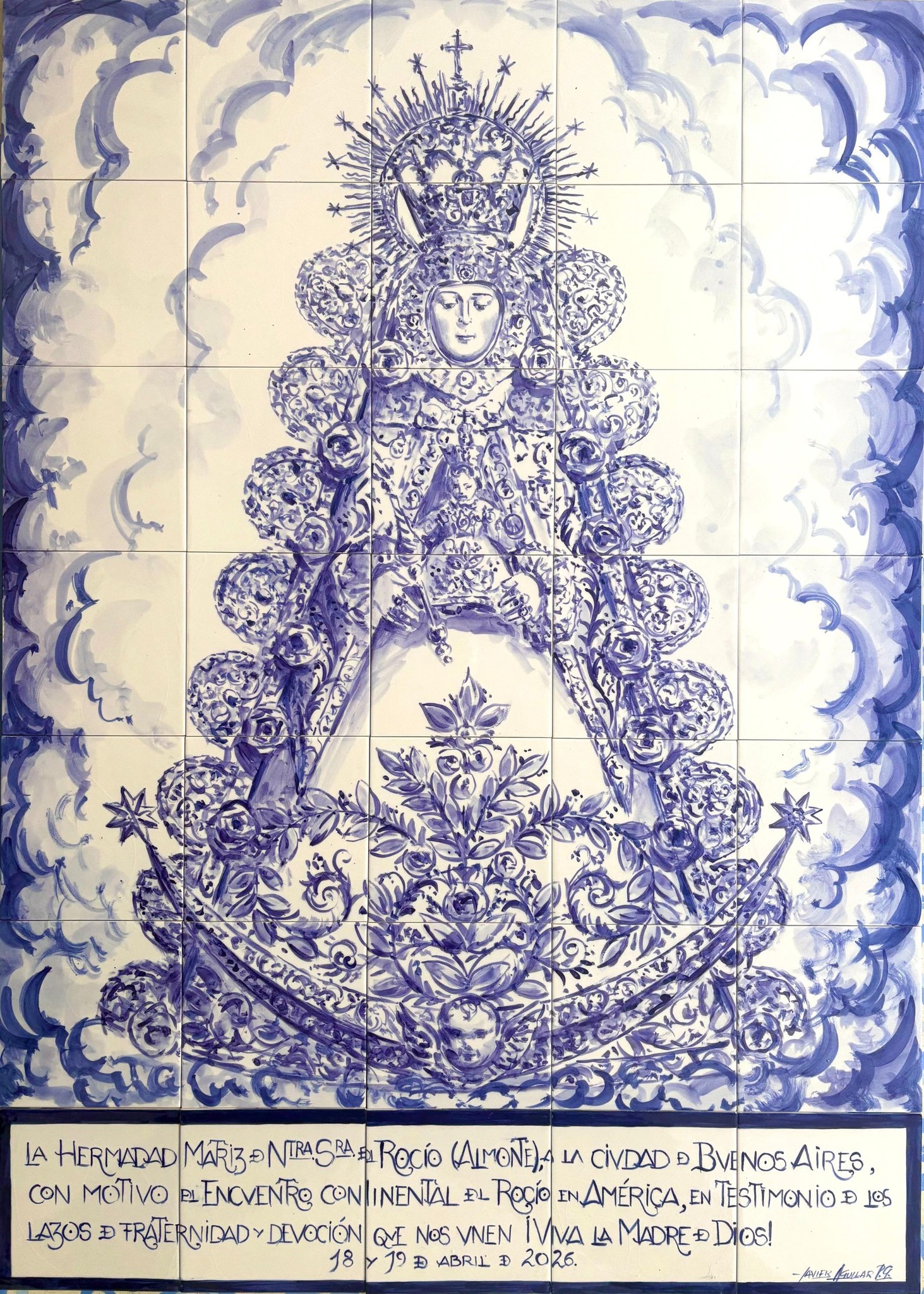 Desde ayer, el Rosedal de Palermo, parque de esta zona residencial y ajardinada de la ciudad de Buenos Aires, donde desde 1929 existe el denominado Patio Andaluz, cuenta con un azulejo de la Virgen del Rocío, de 1,05 x 0,60 cm, obra del artista Javier Aguilar Cejas.