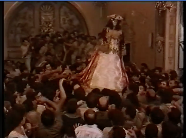 El vídeo muestra imágenes inéditas de la bajada de la Virgen del 11 de noviembre para que las hermanas camaristas procedieran como es costumbre de ataviar a la Blanca Paloma con sus galas de Reina, amaneciendo en la mañana del día 20, sobre sus andas de plata donde la multitud se agolpaba para entronizar a la Sagrada Imagen sobre su altar. Podemos ver en ellas a personas como el gran Alito, que tanto amor y servicios ofreció a la Virgen o caras también conocidas como el de Manolito Sacristán.