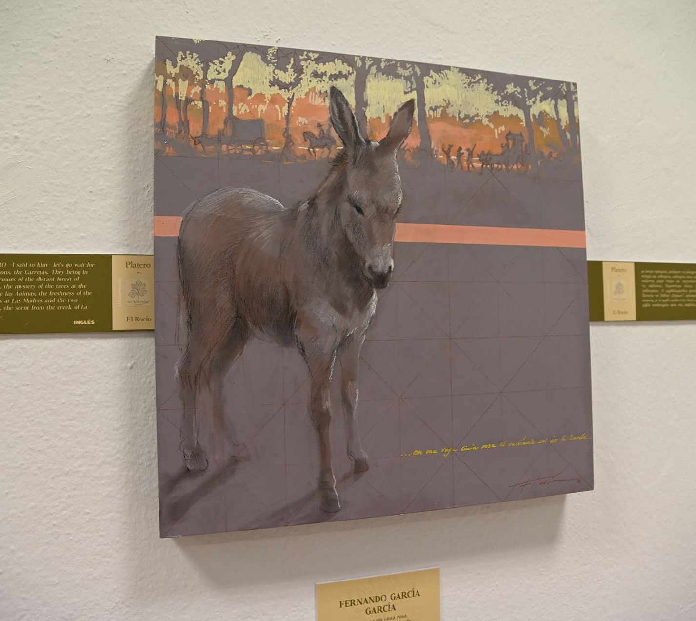 En la tarde del pasado 11 de febrero de 2025 se ha inaugurado en nuestra Casa Hermandad, en El Rocío, la exposición “Platero y El Rocío. 111 aniversario. 24 Lecturas “. La que ha comisariado el escritor y pintor almonteño, Juan Villa. Una muestra de pintura que homenajea al Nobel moguereño y a su obra más internacional, donde dedicó un capítulo al Rocío. Una exposición que hacemos con la ayuda de la Fundación Zenobia-JRJ de Moguer y con la Fundación Cajasol, que podrá disfrutarse hasta el próximo 16 de marzo los fines de semana y festivos.