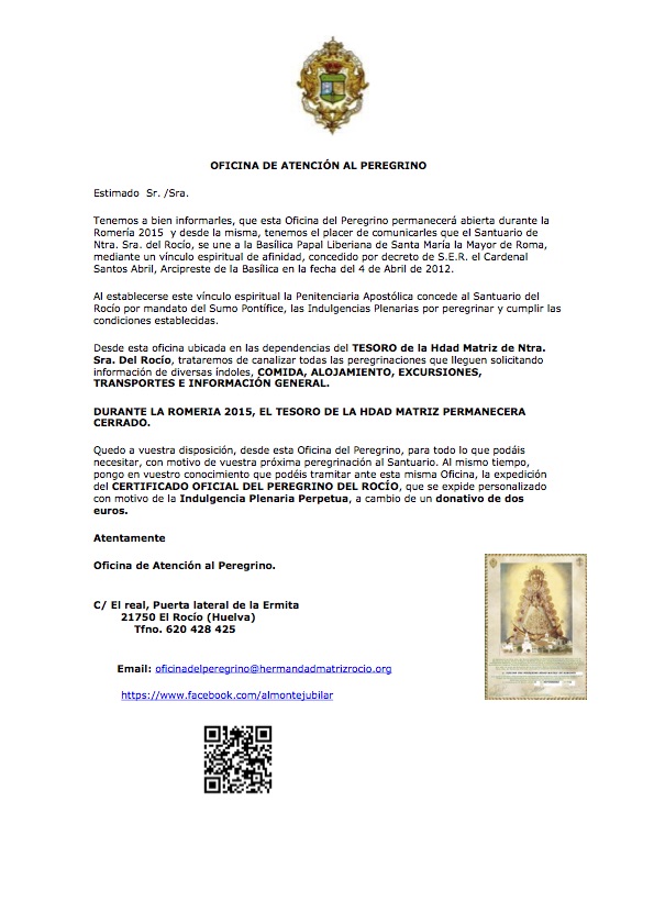 Información de la Oficina de Atención al Peregrino Romería 2015