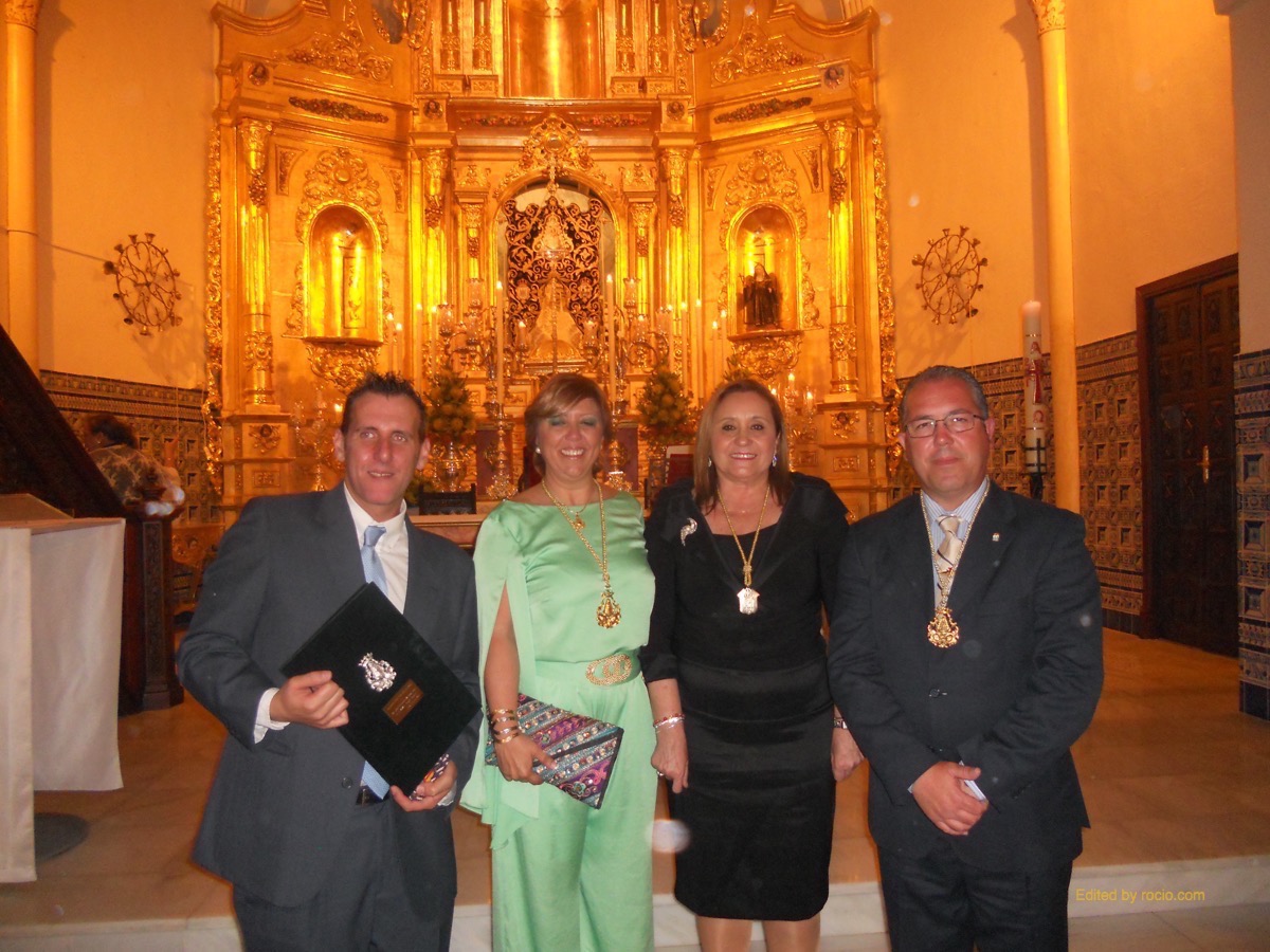 – Foto 615: Ante el Simpecado, el Pregonero, la Hermana Mayor, la Alcaldesa de Isla Cristina y el Presidente de la Hermandad