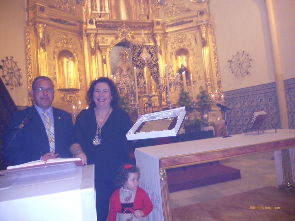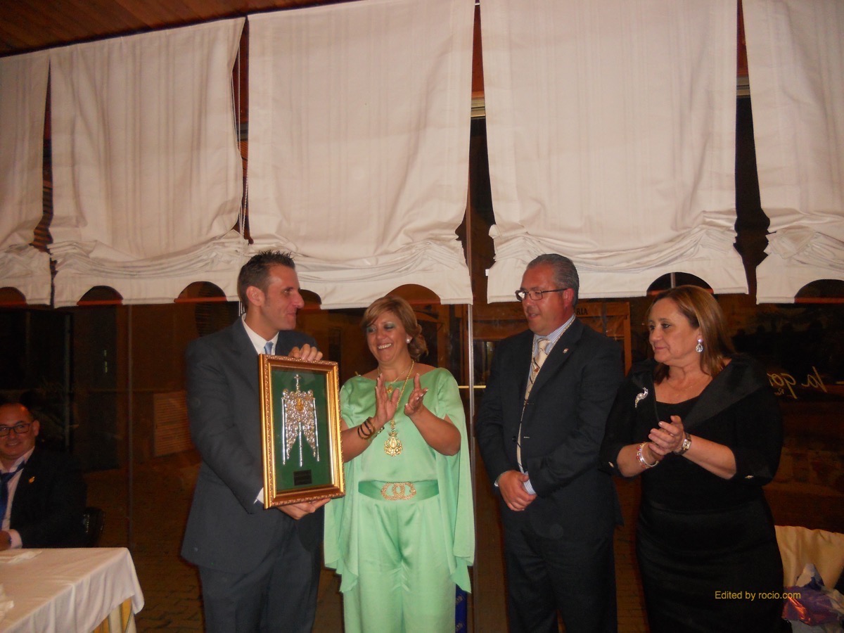 – Foto 611: Mari Toni Contreras, en nombre del Coro La Familia, recibe una placa del Presidente de la Hermandad en agradecimiento por haber cantado la Función Principal