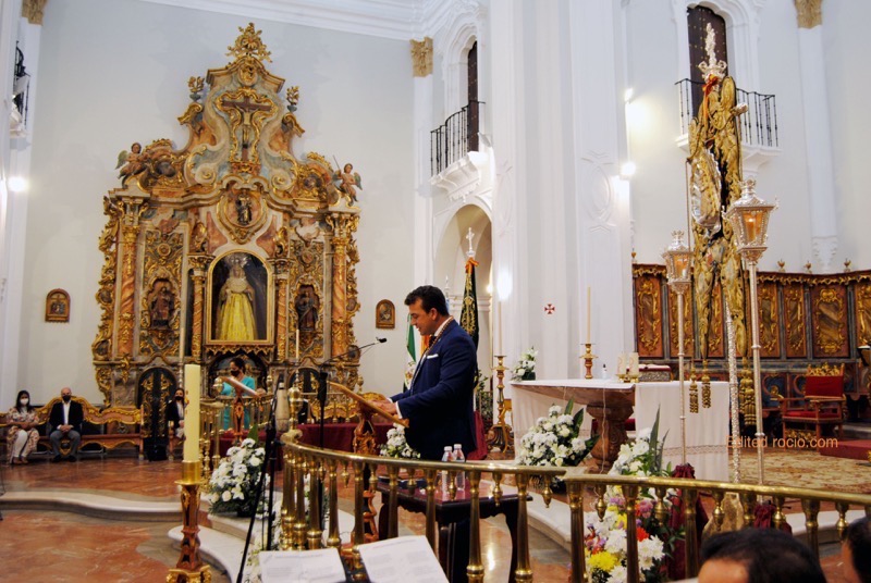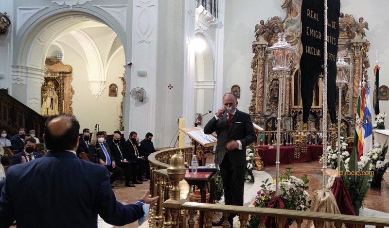 Anunciaba que “el mayo peregrino llega de nuevo a los rocieros de Emigrantes, lo hace de una forma muy diferente, siendo un Rocío de luz, quedando todo parado como el viejo reloj que para sus agujas y todo quedaba con una quietud y la tristeza en la cara de todos los rocieros de todas las hermandades del Rocío.