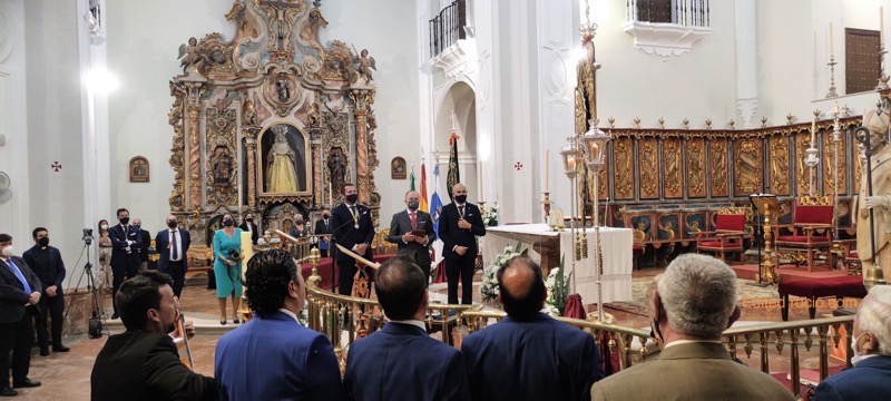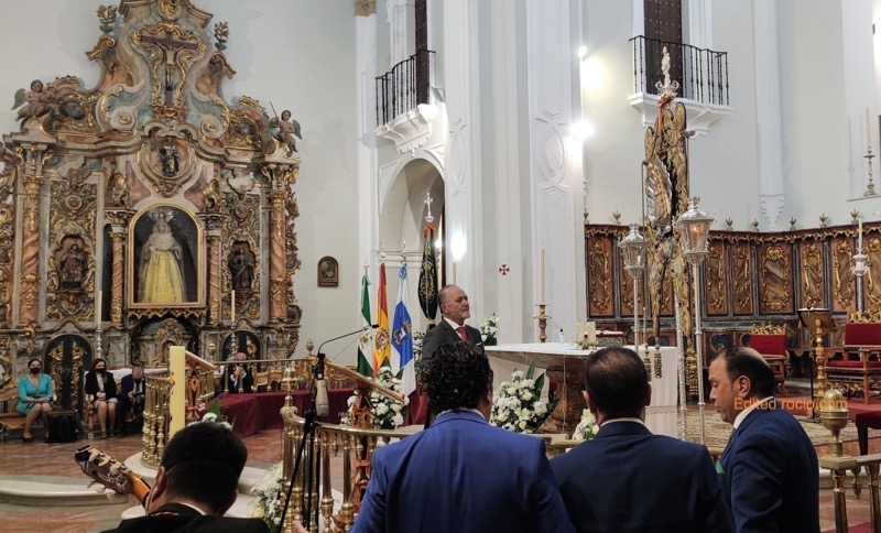 La catedral de Huelva acogía anoche el pregón de la romería 2021 de la Real Hermandad de Emigrantes de Nuestra Señora del Rocío de Huelva, a cargo del almonteño José Manuel Pérez Martínez, que fue presentado por su hijo José Manuel Pérez Villa y que contó con la asistencia del alcalde de Huelva, Gabriel Cruz, la concejala de Hábitat Urbano e Infraestructura, Esther Cumbreras, una amplia representación de la Hermandad de Huelva y de la Sagrada Lanzada.