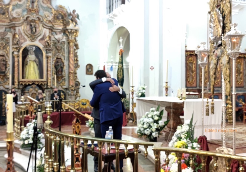 No olvidó José Manuel la etapa “que pudimos compartir juntos, esta vez de mi mano, más que yo de la suya. Siendo hombre de la Virgen, costalero de su peana de plata, podríamos decir que fui yo solo el que descubrí el mundo del costal y la faja, y después de llevar varios años de costalero en diferentes hermandades de penitencia de Almonte, recuerdo aquel año que decidió probar ese mundo. Y no lo hizo en cualquier paso, en cualquier hermandad. Decidió descubrir es mundo en la cuadrilla menos de moda, en la más sufrida, por falta de gente, por ser más seria y menos atractiva, quizás porque marchaba en silencio y, por supuesto, bajo una Virgen, María Santísima en su V Angustia”.