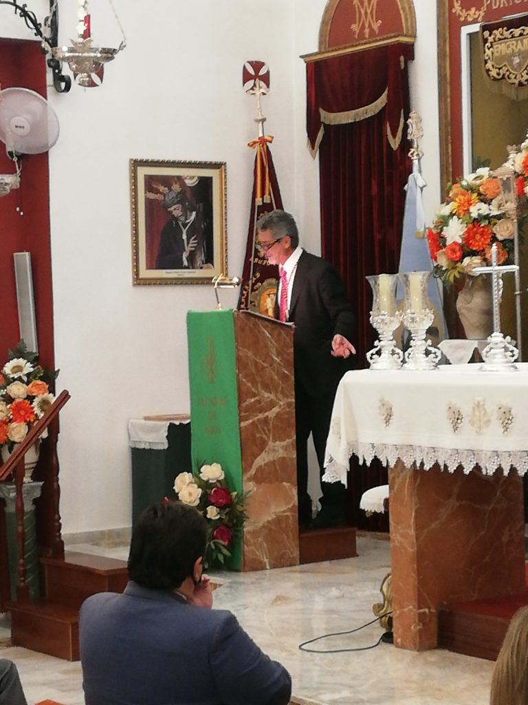 Dio las gracias a la junta de gobierno por pensar en él para este evento tan especial en un año en que se conmemora el cincuentenario de la hermandad. Recordó su pregón que pronunció con “cariño y humildad” hace dos años en la catedral de Huelva donde explicó claramente la relación que mantiene “desde hace casi 40 años, que no son pocos” con esta hermandad.