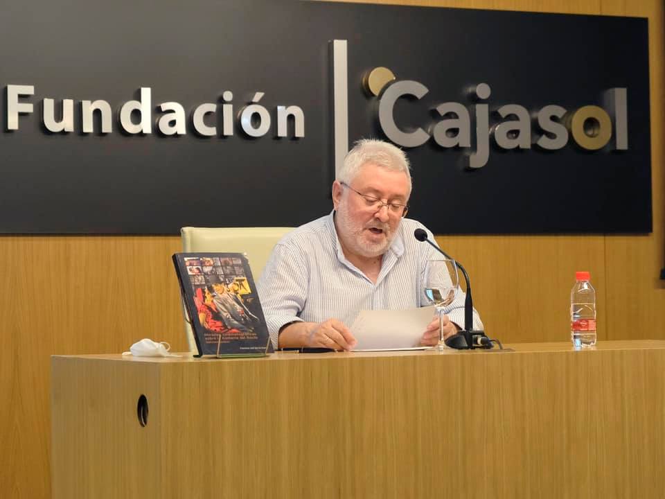 Momentos de la conferencia: “Sevilla en la cinematografía de la Romería del Rocío”, que impartió en la tarde de ayer, José García Espina, en la Sala Machado de la Fundación Cajasol.